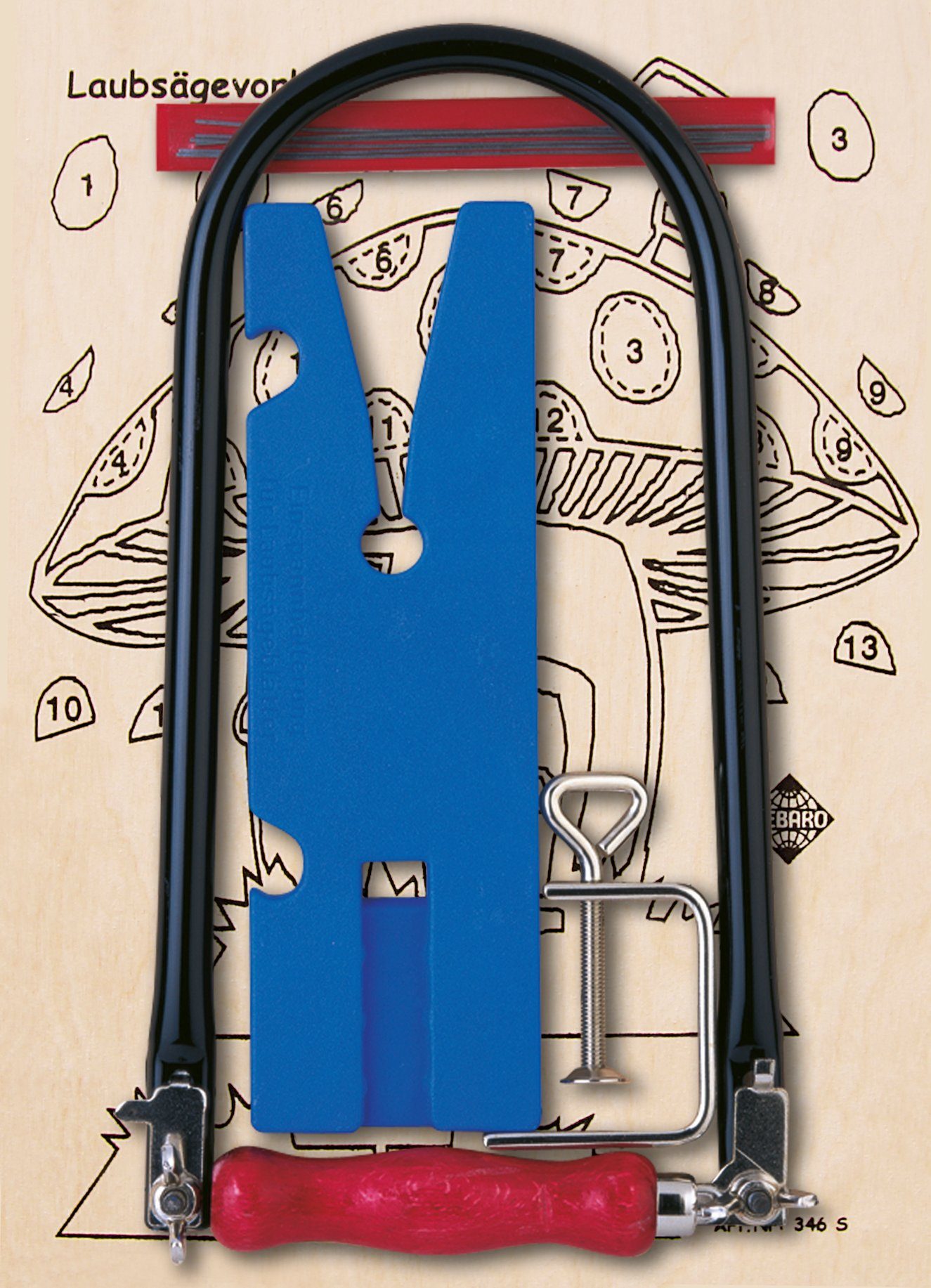 Laubsäge, Laubsägetischchen mit Einspannhalterung, Zwinge, Laubsägeblätter, Laubsägeschlüssel, Holzvorlage DIN A4Altersempfehlung | ab 8 Jahren |