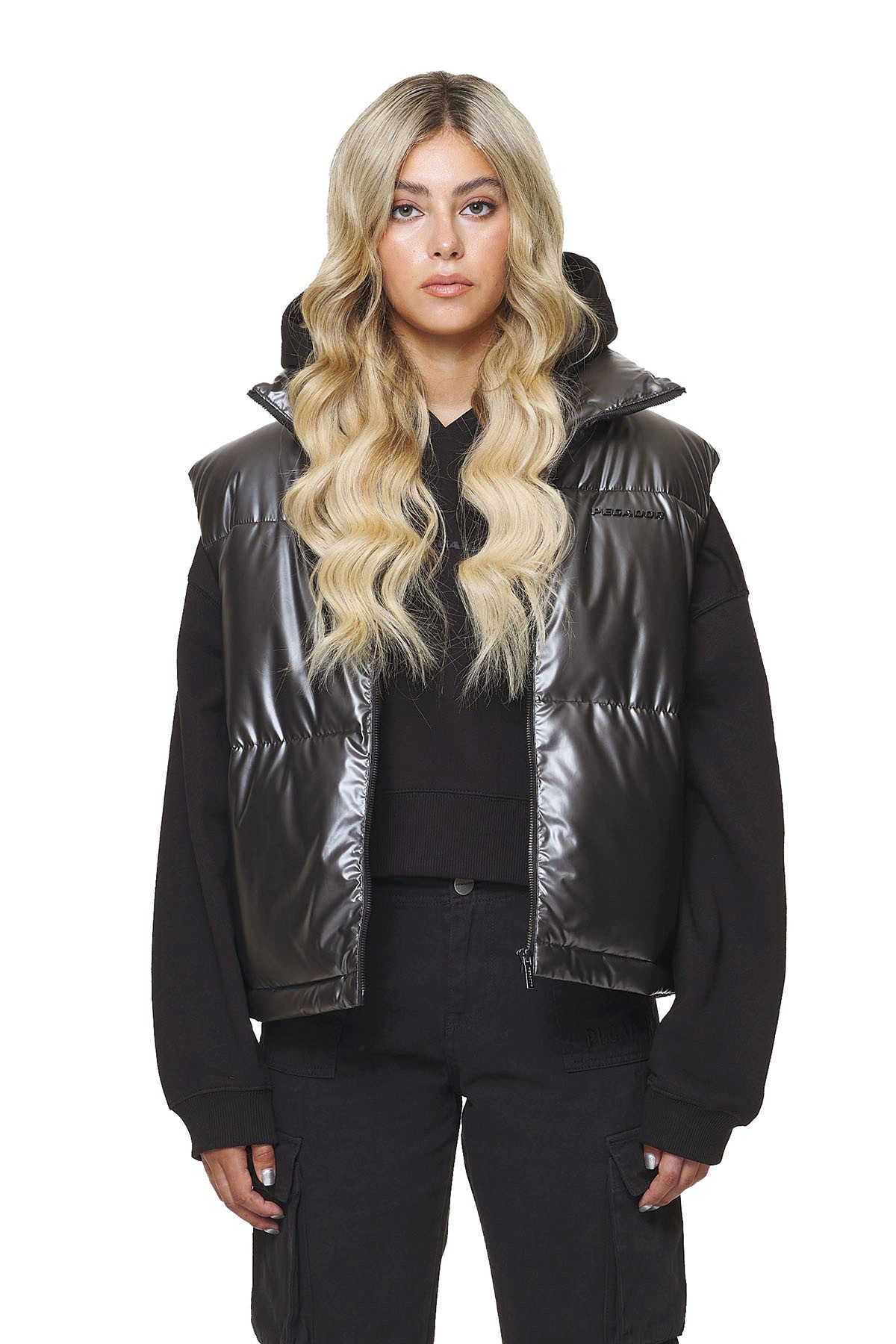 Ein verstellbarer Saum ermöglicht es Ihnen, die Passform Ihren Bedürfnissen anzupassen, während der glatte Oberstoff in glänzender Optik einen Hauch von Luxus verleiht. Egal, ob Sie sie zu einem lässigen Wochenend-Outfit oder als stylishen Layer über einem Pullover tragen - die Pegador Damen Vest Angel Puffer Dark Chrome wird sicherlich zum Blickfang in Ihrer Garderobe.