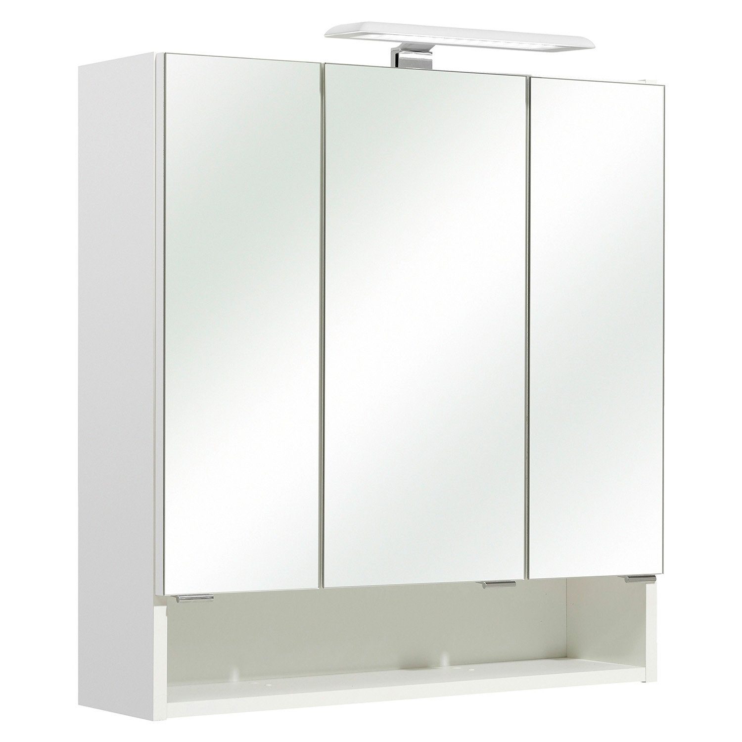 Lieferumfang | 1 Spiegelschrank mit LED-Beleuchtung, 6 Einlegeböden, inkl. Trafo und Zuleitung, 1 Schalter- und 1 Steckdosenelement |