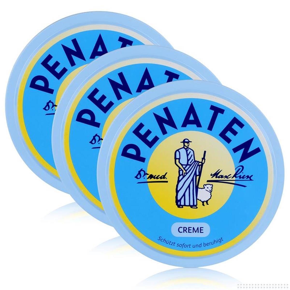 Mit Zinkoxid, natürlichem Wollfett, Panthenol, Allantoin und Hamamelisextrakt. Hautverträglichkeit dermatologisch bestätigt. Im Lieferumfang enthalten: 1x Penaten Creme 50 ml 3er Pack