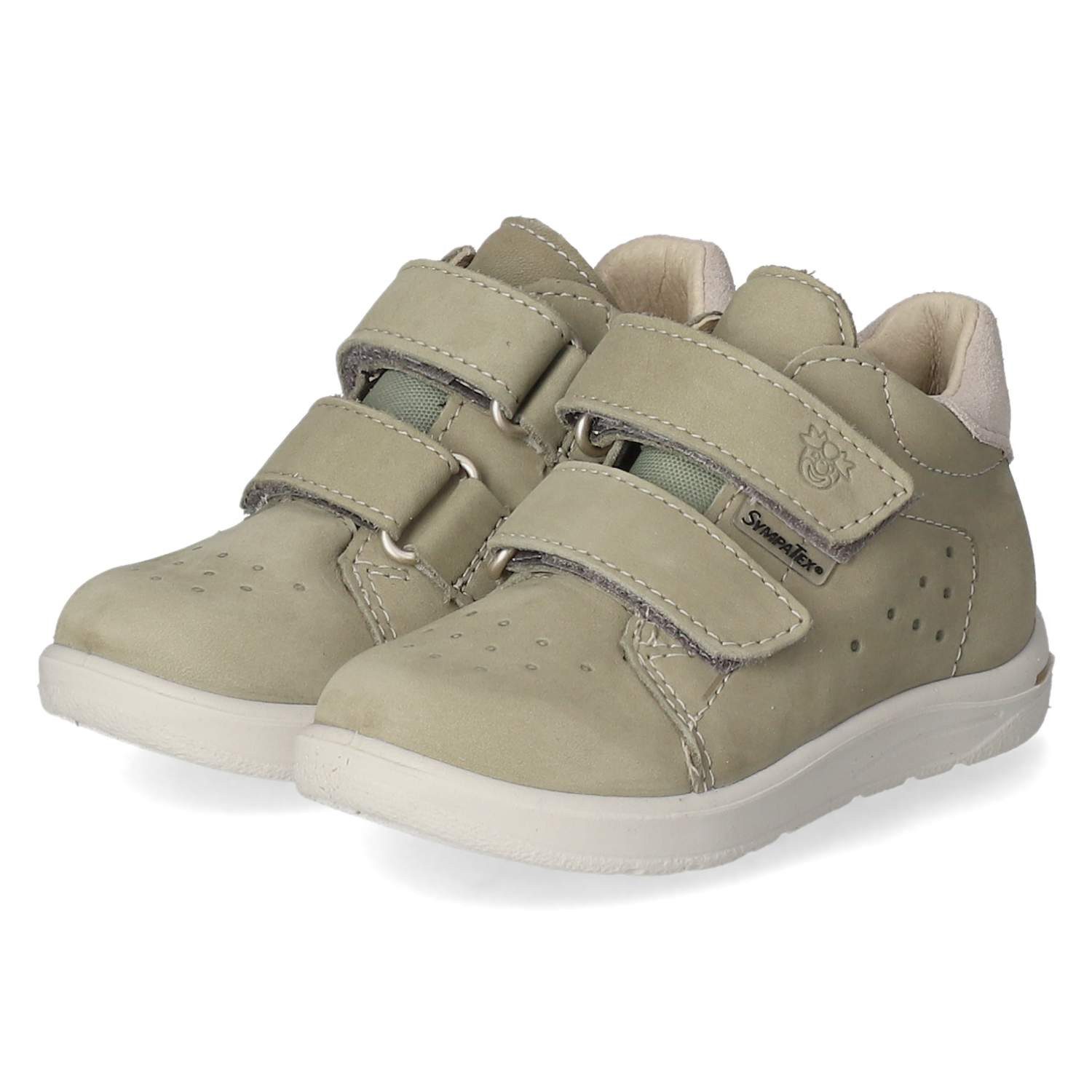 Pepino Kinder Klettschuhe Laas aus grünem Rauleder mit praktischem Klettverschluss für ein einfaches An- und Ausziehen. Dank Sympatex-Technologie sind die Schuhe wasserfest und atmungsaktiv, sodass die Füße auch bei Nässe trocken bleiben. Die verstärkte Ferse sorgt für zusätzliche Stabilität, während dezente Markendetails und Ziernähte das Design abrunden. Der leicht gepolsterte Einstieg und das gepolsterte Wechselfußbett bieten hohen Tragekomfort. Die flexible, rutschhemmende Laufsohle gewährleistet sicheren Halt auf verschiedenen Untergründen. Erhältlich in mittlerer Weite für eine optimale Passform.