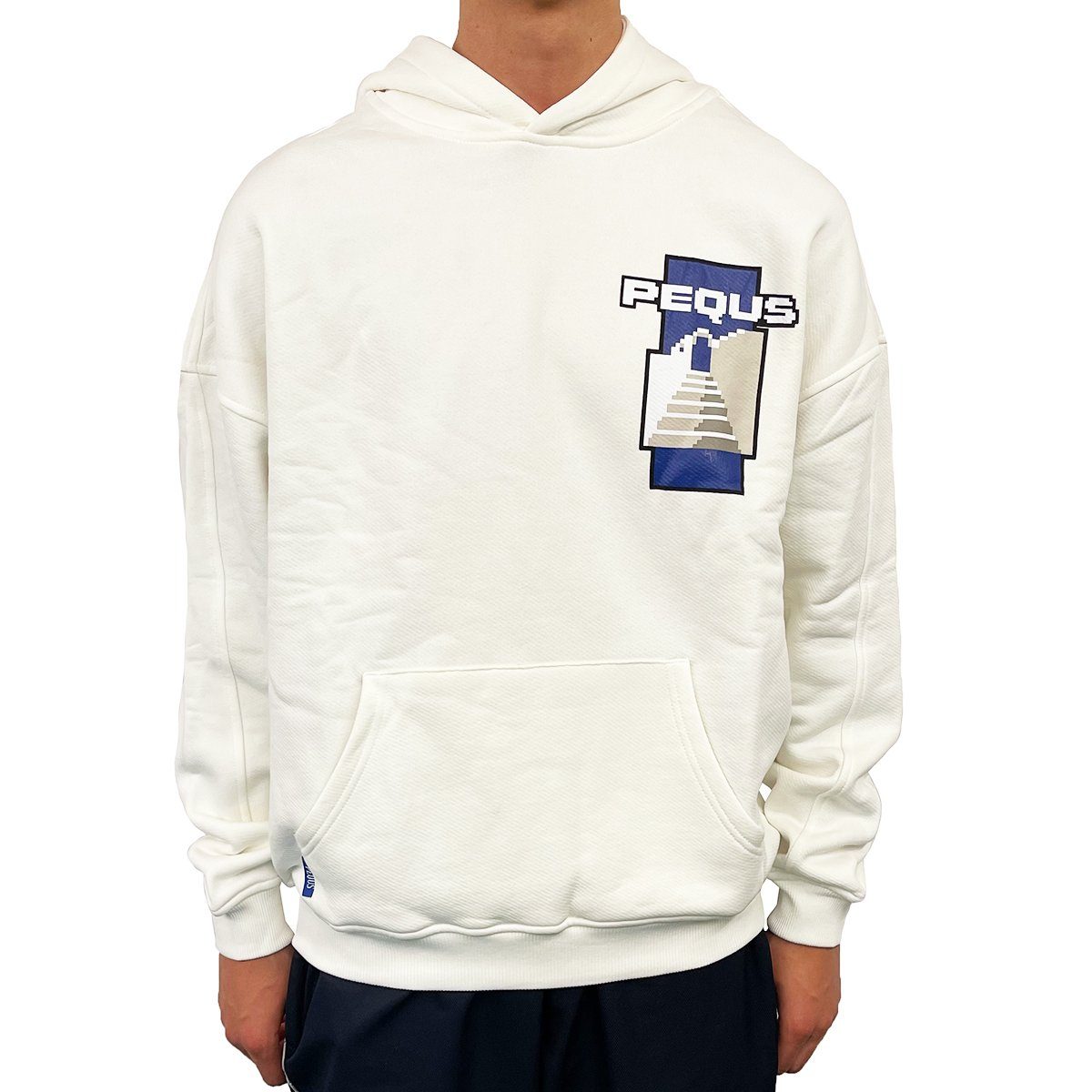 Oversize Hoodie in White, hergestellt aus unserem 380 GSM Premium Baumwolle Stoff. Auf der Vorderseite mit dem Pequs Logo als hochwertigen und langlebigen Siebdruck.