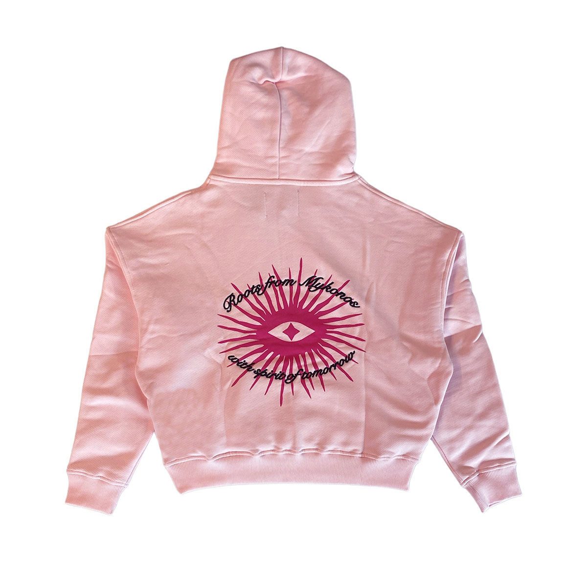 Der Hoodie präsentiert sich mit einem auffälligen "Paradise Beach Club" Grafikdruck, der sofort Urlaubsstimmung verbreitet. Das sanfte Rosé verleiht dem Hoodie eine feminine Note und macht ihn zu einem echten Blickfang.
