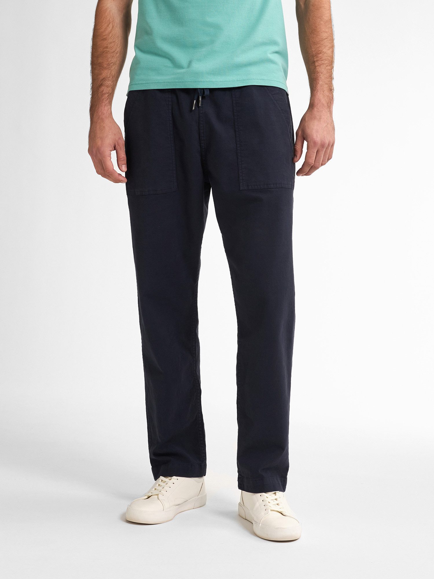 Diese Chino in lockerer Passform kombiniert einen lässigen Look mit einem robusten Worker-Style, perfekt für ein lässiges und dennoch modisches Outfit. Diese Chino aus einem bequemen Stretch-Canvas mit 98 % Baumwolle und 2 % Elasthan bietet optimale Bewegungsfreiheit. Die markanten Seitentaschen und der stylische Aufnäher verleihen der Hose einen robusten, industriellen Charakter, der an einen echten Workwear-Look erinnert.