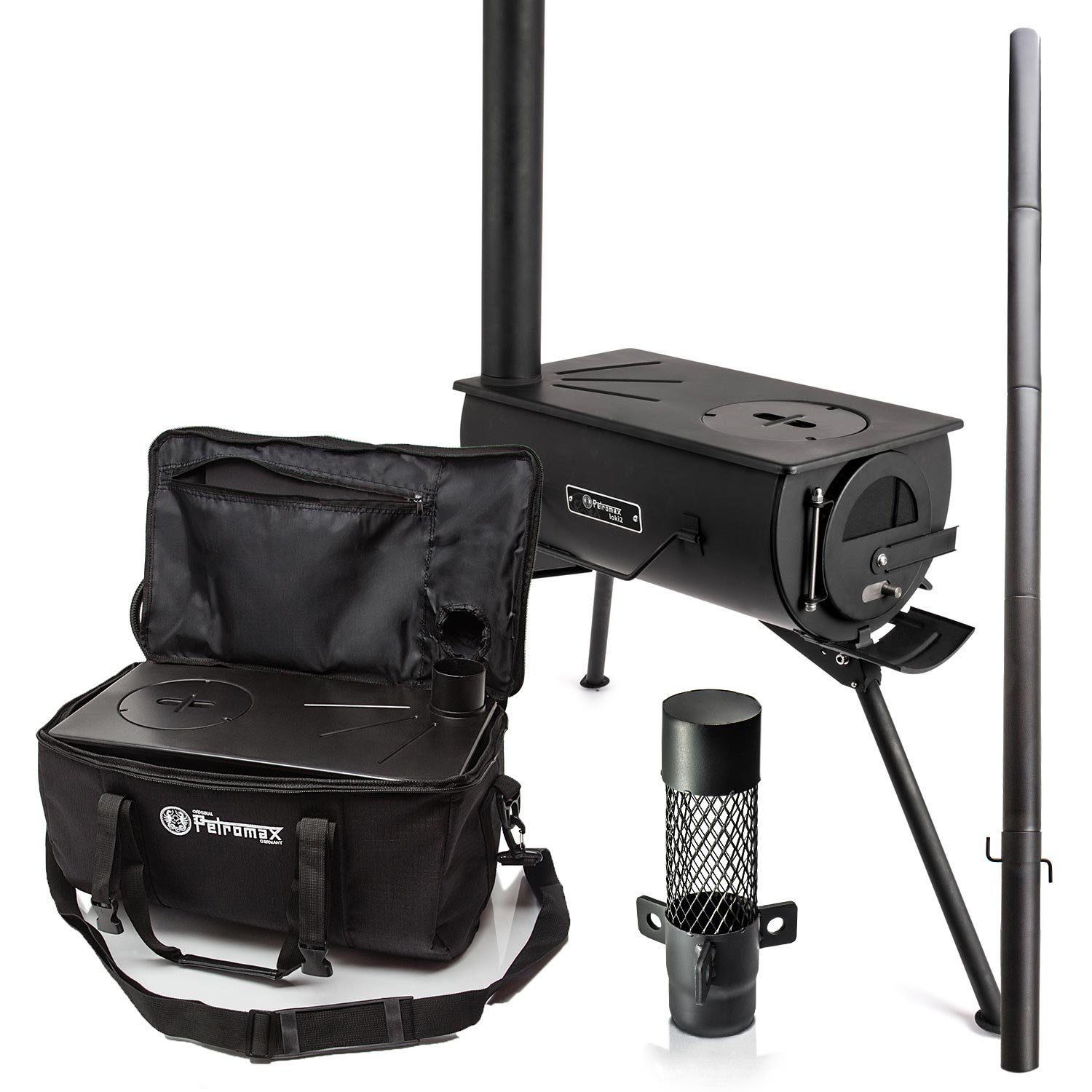 PETROMAX original "LOKI 2" -Campingkocher & Zeltofen- Der Campingkocher und Zeltofen überzeugt mit seinem ausgefeilten Design und der wohl durchdachten Konstruktion: Über ein Stiftsystem werden die Beine ausgeklappt und sorgen für einen sicheren Stand. Sind die drei Standbeine eingeklappt und das fünfteilige Ofenrohr im Bauch des Ofens verstaut, bringt es der leistungsstarke Kocher auf ein schlankes Packmaß. Mit etwa 12 Kilo gehört er zu den Leichtgewichten unter den Zeltöfen. Beim Camping eine leckere Mahlzeit zu kochen, ist mit dem Petromax Loki so einfach wie zuhause am Herd: Anheizen und Topf oder Pfanne auf die Kochfläche (40 x 25 cm) stellen. Es ist auch möglich, die runde Kochplatte aus der Kochfläche herauszunehmen und direkt über dem offenen Feuer kochen. Der Campingkocher und Zeltofen Loki eignet sich für verschiedene Zelttypen, wenn er um die passende Zeltdurchführung ergänzt wird. Hierfür bietet Petromax die entsprechenden Zubehörteile und auch eine Transporttasche. Technische Daten: Material: beschichteter Stahl | Größe: (aufgebaut) B x H x T (in cm): 83,5 x 241 x 55 | Packmaße: B x H x T mit Verpackung (in cm): 33,5 x 33,5 x 52 | Gewicht: 12 kg | Durchmesser Ofenrohr: 6 cm Lieferumfang: 1 x Bedienungsanleitung (Deutsch/Englisch/Französisch) | 1 x Aschefang | 5 x Ofenrohr | 1 x Campingkocher/ Zeltofen Hinweis: Wir empfehlen immer einen Funkenfang bzw. die Transporttasche(Zusatzartikel) zu verwenden. Funkenfang für Loki 1 & 2 | Das Extra an Sicherheit für den Zeltofen und Campingkocher. Es knackt und knistert im Zeltofen; Funken steigen durch das Ofenrohr auf. Um den Loki sicher und umweltbewusst anzufeuern, empfiehlt Petromax den Funkenfang. Das zylinderförmige Metallgitter wird auf das letzte Ofenrohr aufgesteckt und aufsteigende Funken oder glühenden Teilchen erlöschen, bevor sie am Zelt oder in der Natur Schaden anrichten. Besonders beim Verbrennen von harzigen Holzarten lohnt sich der Funkenfang, weil dann besonders viele glimmende Partikel entstehen. Transporttasche für Loki 1 & 2 | Eingepackt und mitgenommen: In dieser Tasche wird der kompakte Zeltofen und Campingkocher Loki verstaut. Die besonders belastbare und reißfeste Transporttasche ist aus hochwertigem Ripstop-Gewebe gefertigt. Von innen ist sie gepolstert, sodass nichts wackelt oder verrutschen kann. Die beiden Tragehenkel und der abnehmbare sowie längenverstellbare Schultergurt sind gesondert verstärkt und garantieren bequemen Tragekomfort.