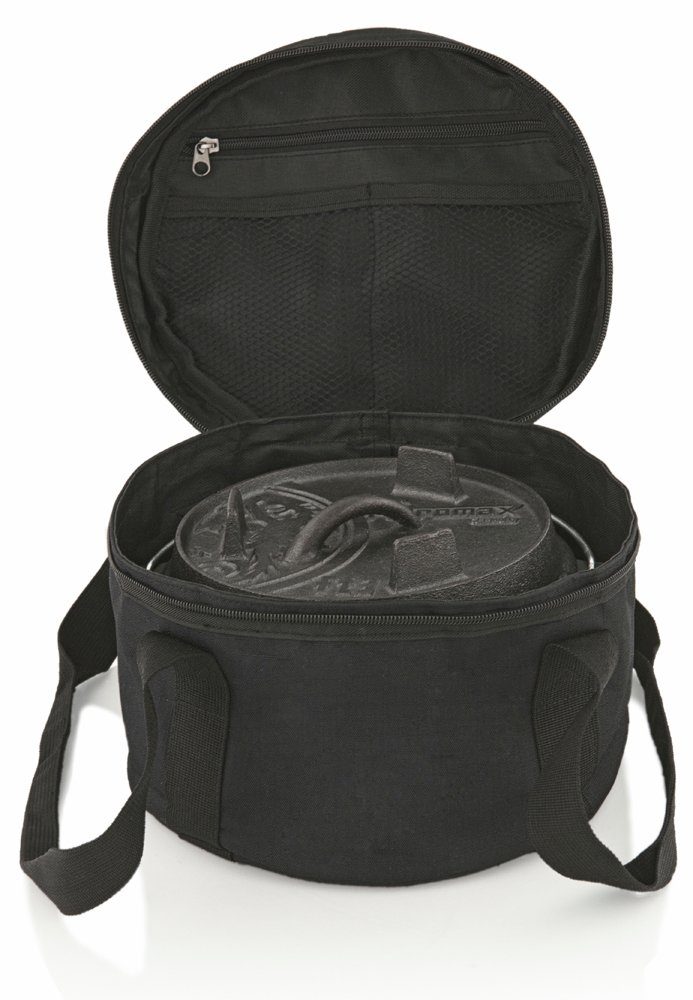 In der Petromax Feuertopftasche lassen sich elegant der Petromax Feuertopf oder Dutch Oven ähnlicher Розмір verstauen und transportieren. Die Tasche ist mit dem traditionellen Drachenlogo und dem Petromax Schriftzug bestickt. Sie ist extrem reißfest durch das verwendete Ripstop-Nylon. Höchstmögliche Stabilität, Reißfestigkeit und Langlebigkeit sind so garantiert. Die besonders verwebten Griffe und der verstärkte Boden garantieren hohen Tragekomfort. Der Boden ist herausnehmbar und kann somit bei Bedarf einfach mit einem feuchten Tuch abgewaschen werden. Die Tasche besitzt im Deckel weitere Taschen für Zubehör, Petromax Zunder, Streichhölzer, etc.