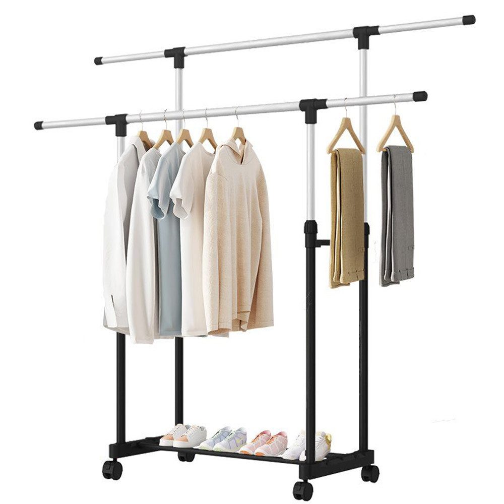 STURDINESS: Leichte, verchromte, ausziehbare, breite Kleiderstangen halten insgesamt bis zu 88 Pfund aus; jede Stange bis zu 44 Pfund