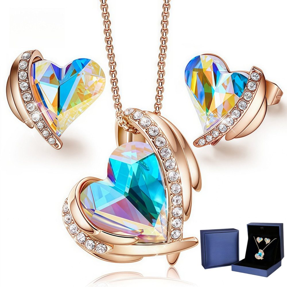 ANGEL DESIGN: Dieser elegante Anhänger besteht aus einem geflügelten Rahmen aus Roségold mit einem herzförmigen Kristall in der Mitte. Das fließende Design ist inspiriert von den weichen, anmutigen Flügeln, die am Himmel flattern und die wahre Liebe umschwirren. Diese Halsketten-Kollektion ist das perfekte Muttertagsgeschenk für eine glamouröse Frau und eine auffällige Kollektion für jeden Anlass!