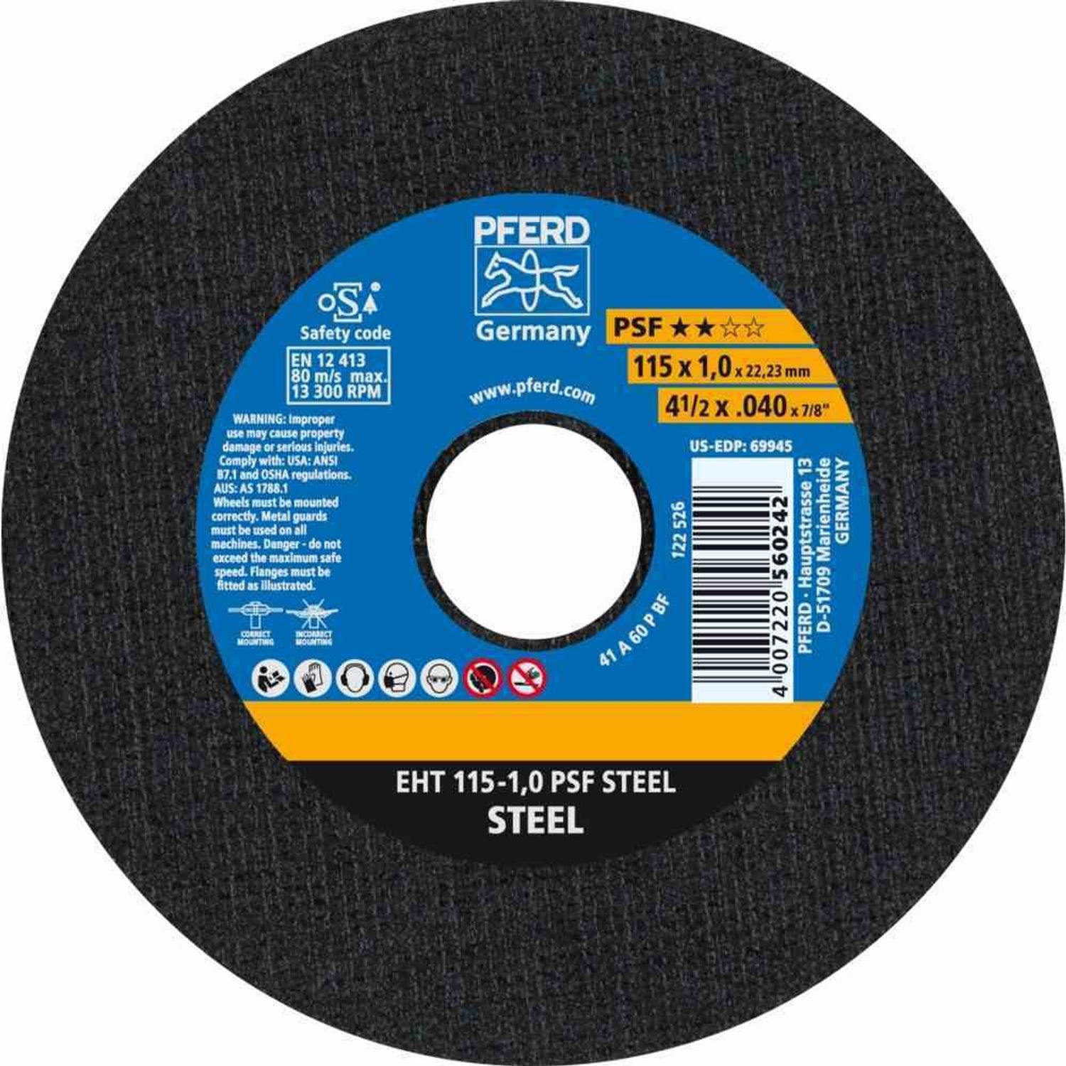 • Pferd EHT1151, 0A60PPSF Trennscheibe A60PPS 115x1,0mm: Ein Produkt, das durch innovative Technik und hochwertige Verarbeitung besticht. Perfekt für Profis und Hobbyanwender