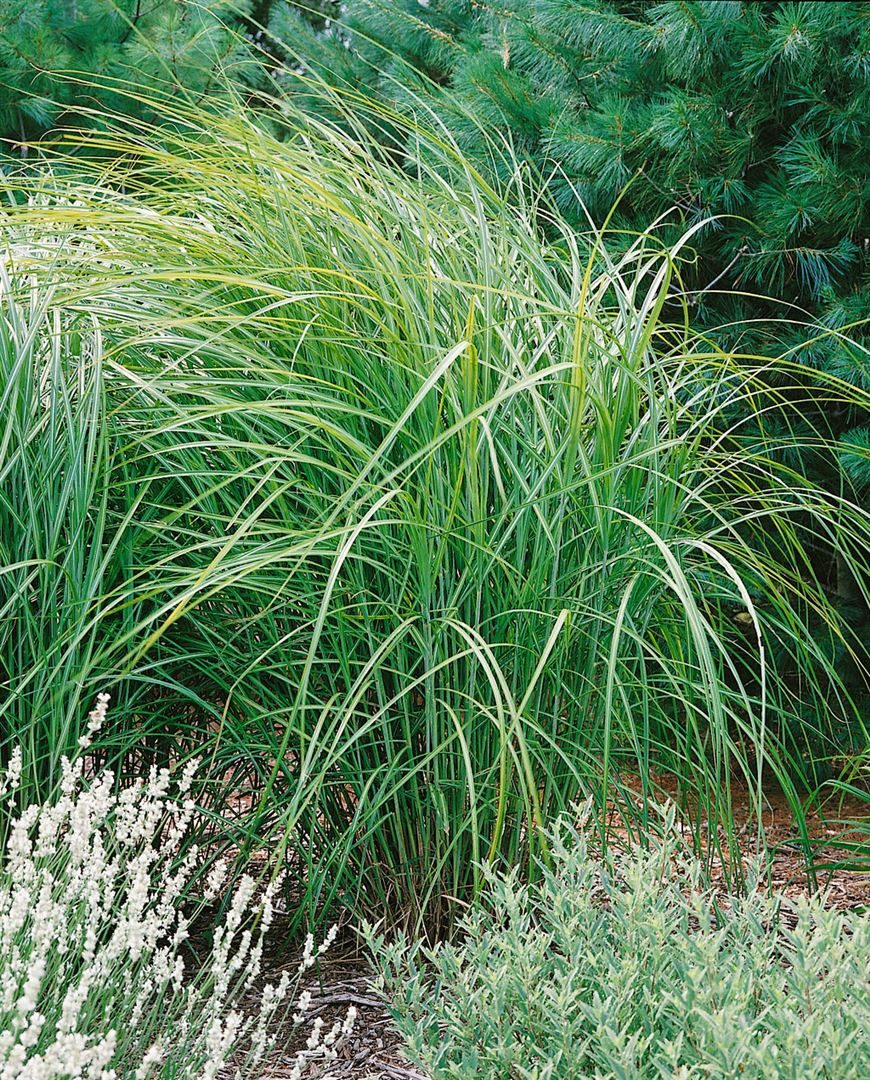 Im Spaetsommer zierende silbrig rose Bluetenrispen schmales gruenes Laub mit goldgelber Herbstfaerbung bringt Struktur und Bewegung ins Beet