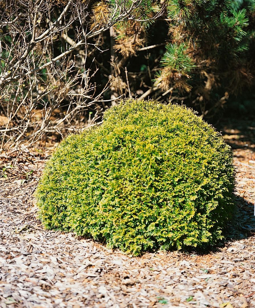Thuja occidentalis ‘Anniek’, der Abendländische Lebensbaum ‘Anniek’, ist ein kompaktes, immergrünes Ziergehölz mit dicht verzweigter, gleichmäßiger Struktur und einer edlen, breit kegelförmigen bis rundlichen Wuchsform. Das fein geschuppte Laub zeigt je nach Standort eine frische gelbgrüne bis goldgelbe Färbung, die in der vollen Sonne am intensivsten ausfällt und in der kalten Jahreszeit einen dezenten bronzenen Ton annehmen kann. Als langsam wachsender Gartenstrauch überzeugt ‘Anniek’ als formstabile Strukturpflanze, die Beeten und Rabatten das ganze Jahr über Farbe und Kontur verleiht und zugleich durch ihren typischen Lebensbaumduft angenehm unaufdringlich wirkt. Ob als kompakter Solitär im Vorgarten, als niedrige Heckenpflanze zur Einfassung, in Gruppenpflanzungen mit anderen Koniferen oder als pflegeleichte Kübelpflanze auf Terrasse und Eingang – diese Sorte setzt harmonische Akzente und fügt sich in klassische wie moderne Gestaltungen ein. In Steingärten, auf Gräbern und in kleinen Gärten punktet sie mit ihrer konsequenten Formtreue ohne ständigen Schnittzwang, bleibt dabei aber gut schnittverträglich für leichte Korrekturen und Formschnitt. Ein sonniger bis halbschattiger Standort fördert die leuchtende Nadelfarbe; der Boden sollte humos, durchlässig und gleichmäßig frisch sein, Staunässe wird nicht gut vertragen. Regelmäßiges, maßvolles Gießen in Trockenphasen und eine dünne Mulchschicht unterstützen die gleichmäßige Entwicklung. Mit ihrer robusten Winterhärte, dem ruhigen Erscheinungsbild und der kompakten Wuchsleistung ist ‘Anniek’ ein vielseitiger Blütenstrauch-Ersatz und zuverlässiges Ziergehölz für dauerhaft attraktive Gartenbilder.