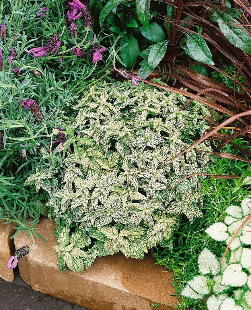 Lamiastrum galeobdolon Hermanns Pride mit silbrig panaschiertem Laub gruenen Adern halbimmergruen und ganzjaehrig dekorativ