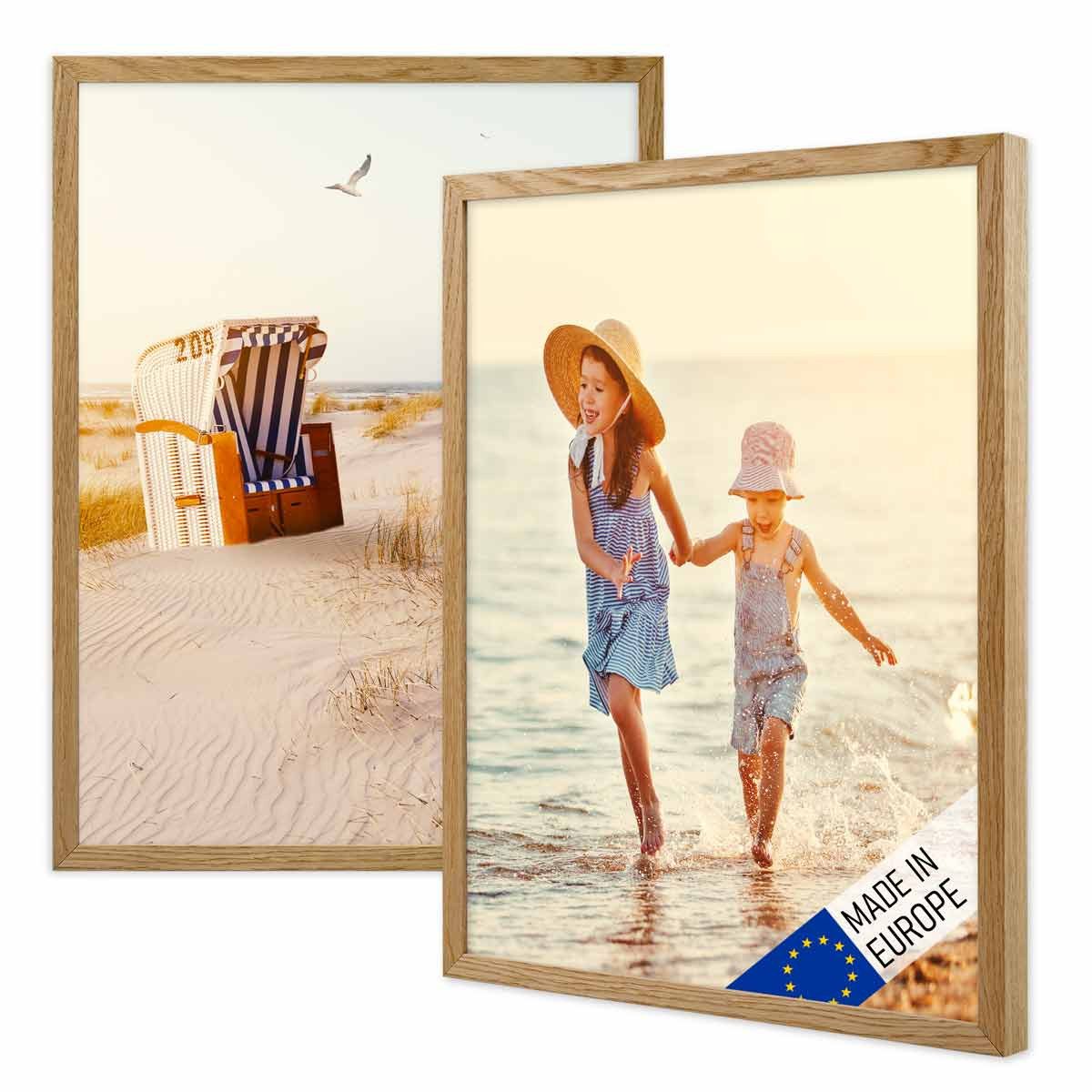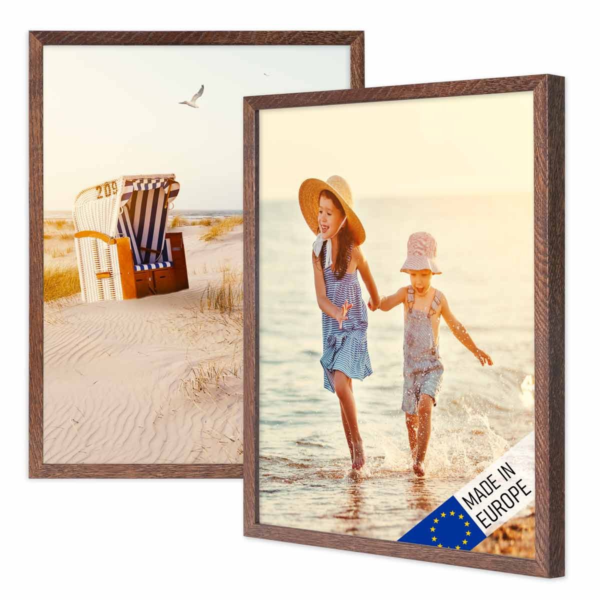 Holzrahmen mit bruchsicherer Acrylglasscheibe. Durch seinen zeitlosen Look passt der Bilderrahmen zu fast jedem Einrichtungsstil. Insbesondere für die langfristige Dekoration von Wohnzimmer, Flur, Küche oder Schlafzimmer ist der robuste Holz-Bilderrahmen perfekt geeignet. Mit seinem geradlinigen Schnitt und seinem zurückhaltenden Farbton kommt der Bilderrahmen aus Holz in jedem Raum zur Geltung, ohne sich dabei aufzudrängen. Fotos, Urlaubsbilder oder andere Erinnerungsstücke werden sowohl aufgestellt als auch aufgehängt an der Wand dezent in Szene gesetzt, wobei der Fokus auf das Motiv gelenkt wird. Kombiniert mit anderen Größen lässt sich eine zeitlose Bilderwand mit individuellem Charakter ganz einfach selbst gestalten - egal ob die Bilderrahmen dabei ganz symmetrisch in einer Reihe, als Raster oder locker über die Wand verteilt angeordnet werden. (Motive und Dekoration sind nicht im Lieferumfang enthalten.)