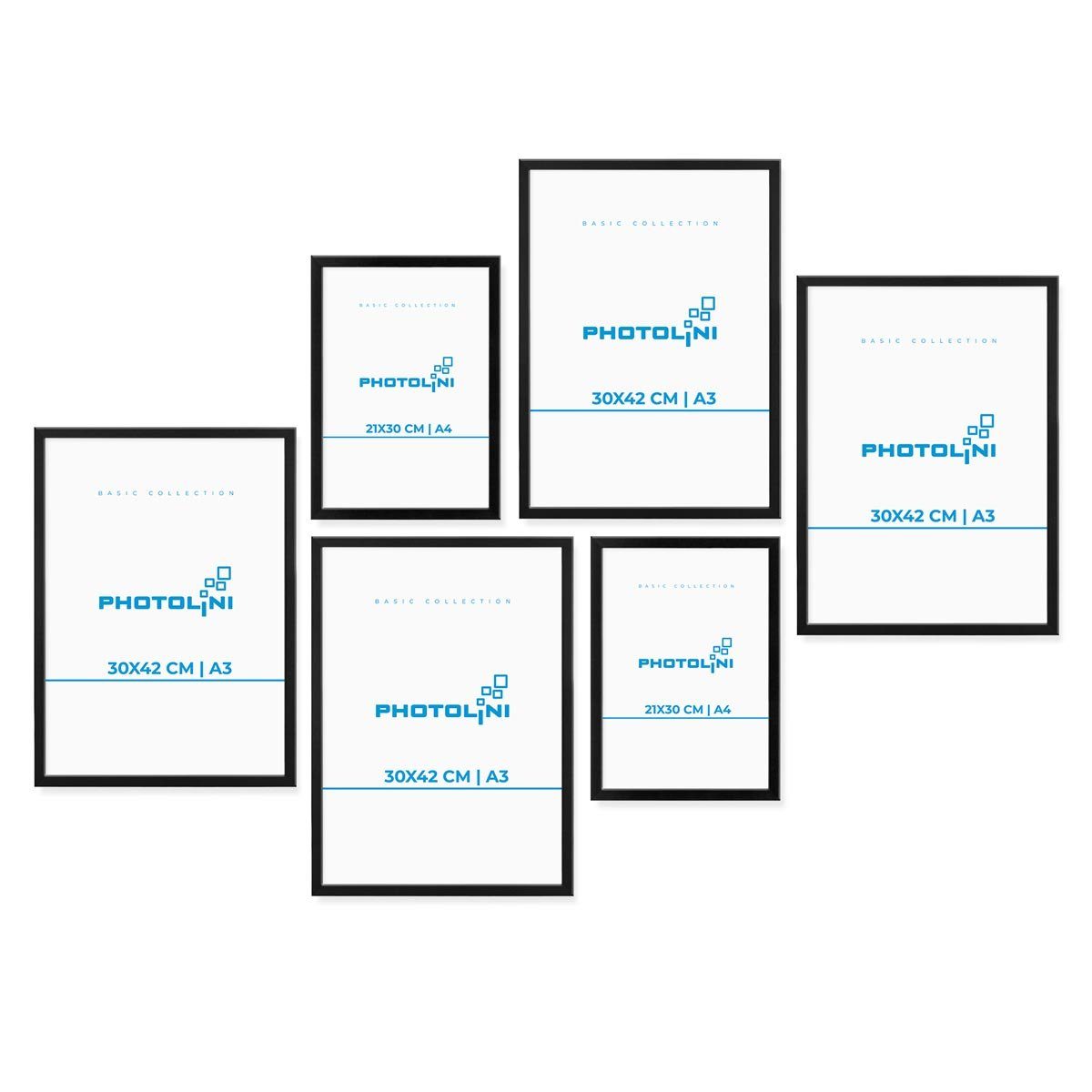 Bilderrahmen-Collage in Schwarz zur Gestaltung einer individuellen Bilderwand oder Bildergalerie - moderne Wechselrahmen aus MDF und praktisches Zubehör. Bilderwände haben einen ganz besonderen Charme und verleihen dem eigenen Zuhause einen individuellen Charakter. Sie sind eine tolle Möglichkeit um Fotos Postkarten Zeichnungen oder andere Erinnerungsstücke an der Wand in Szene zu setzen. Mit diesem Bilderrahmen-Set lässt sich eine individuelle Bilderwand einfach selbst gestalten. Die Bilderwand lässt sich jederzeit erweitern und mit anderen Bilderrahmen-Sets ergänzen. (Motive und Dekoration sind nicht im Lieferumfang enthalten.)