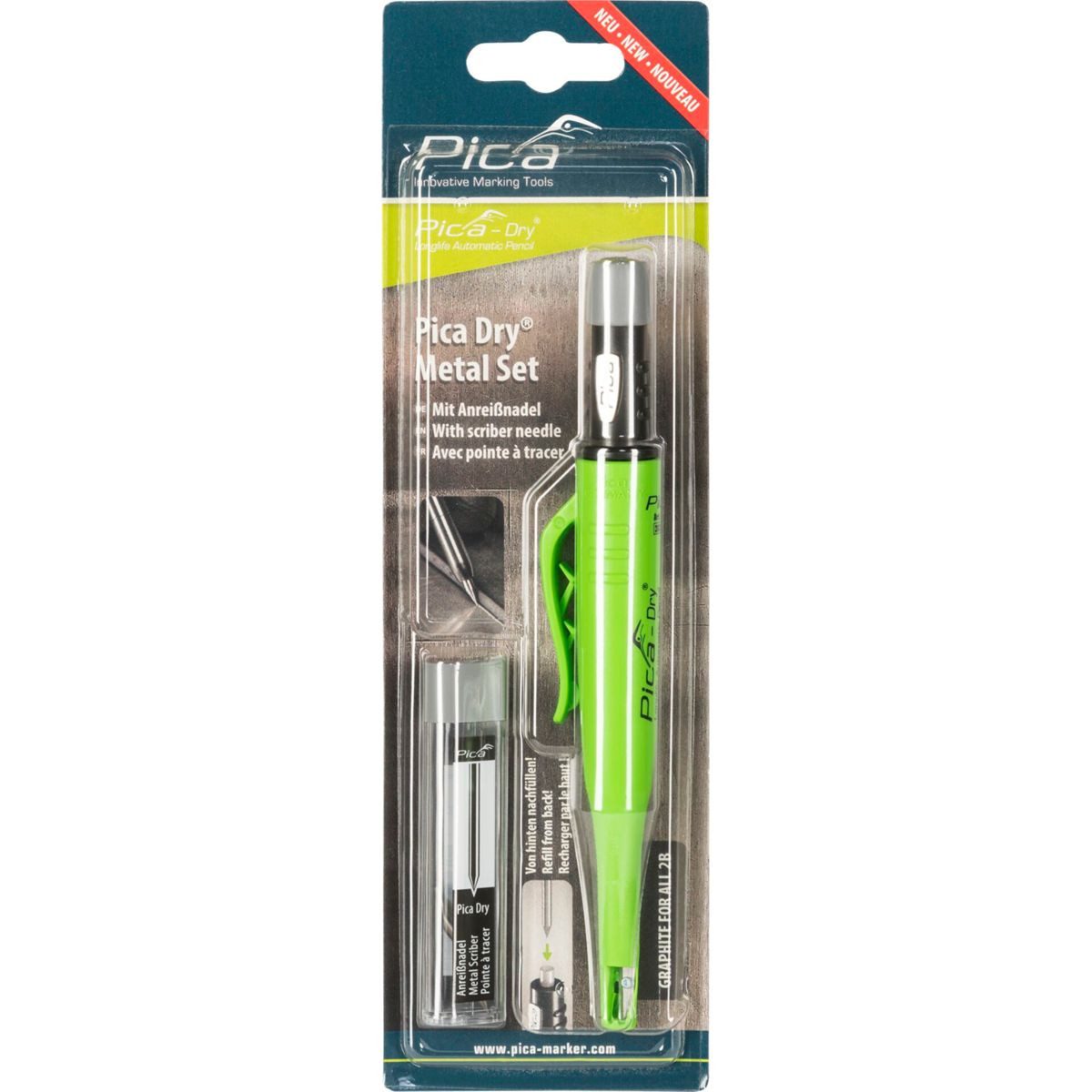 Das Bundle aus einem Pica Dry & einer Anreißnadel ist das ultimative Upgrade für jeden, der mit Metall arbeitet. Durch die aus Hartmetall bestehende Nadel können metallene Oberflächen präzise angerissen werden, ohne das diese verschleist.