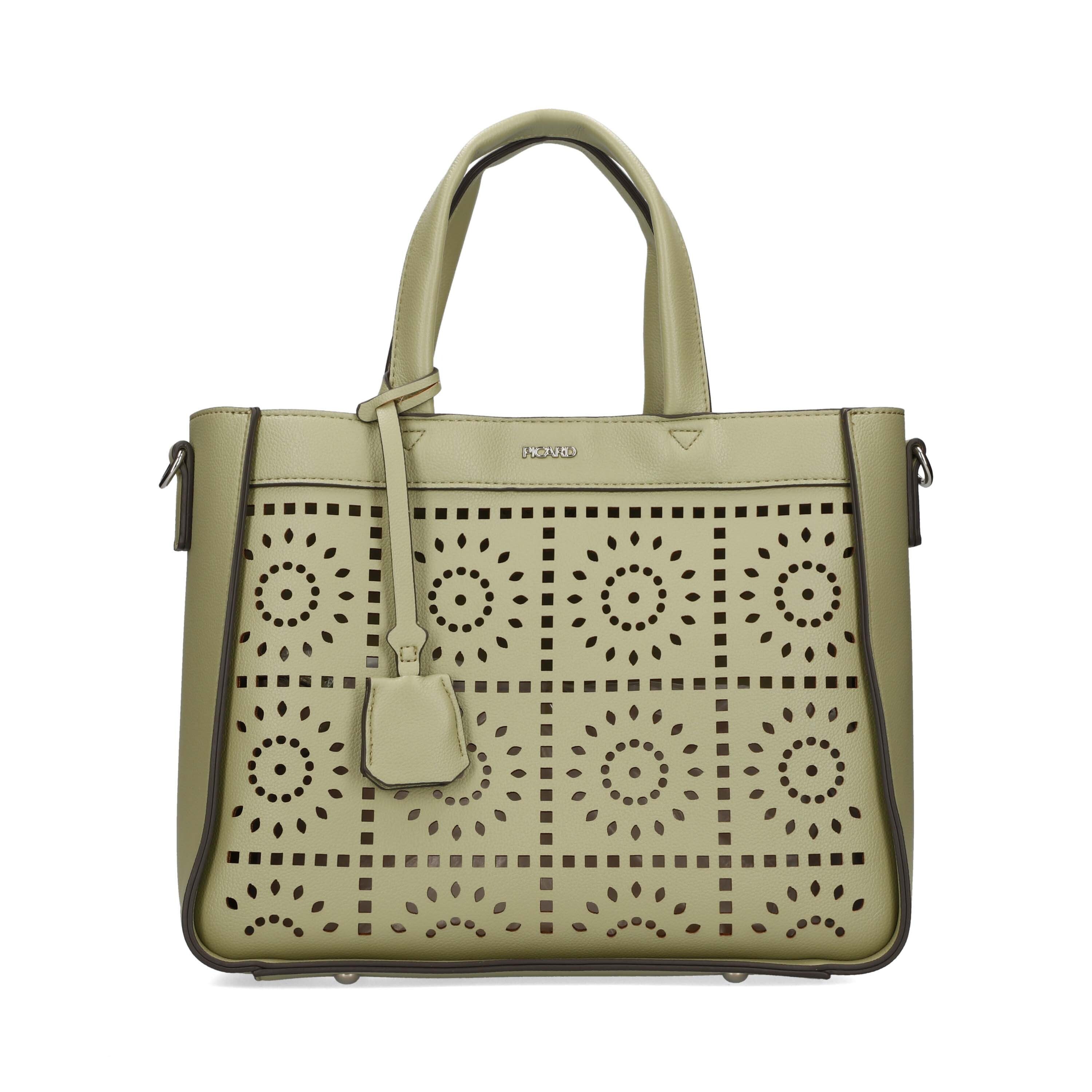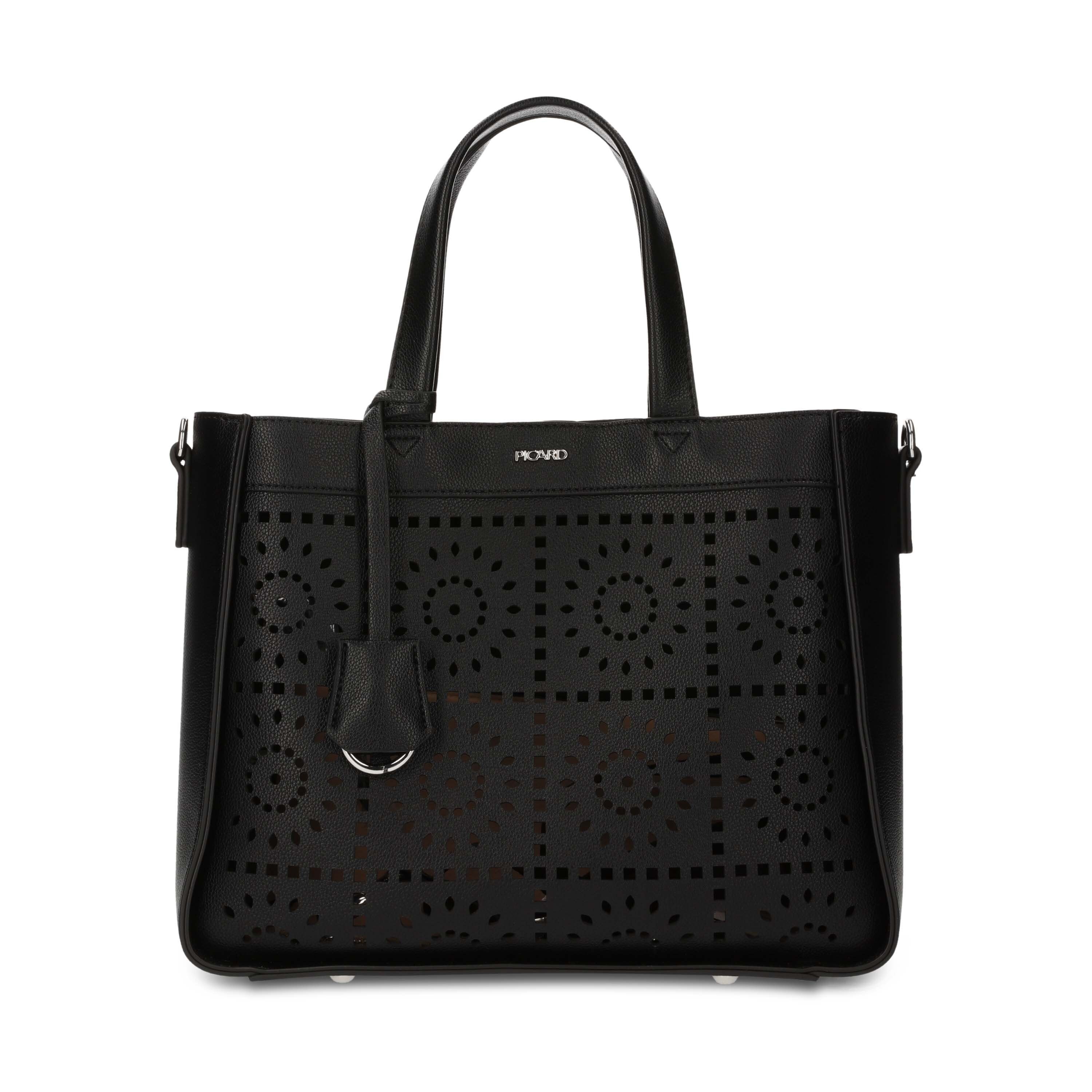 Ausdrucksstarkes Design sowie genarbtes Synthetikmaterial machen diese große Henkeltasche zu einem Blickfang. Das herausnehmbare Sicherheitsfach im Inneren schützt Wertgegenstände und das Hauptfach lässt sich mit einem Magnetverschluss verschließen. Durch den abnehmbaren sowie längenverstellbaren Schultergurt kann die Tasche an jedes Outfit angepasst werden. Zeitlose Eleganz in Perfektion!