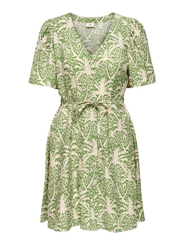 Das JDY Sommerkleid 15350739 ist die perfekte Wahl für warme Tage und stilvolle Auftritte. Mit seinem modischen Muster, dem V-Ausschnitt und dem Bindegürtel in der Taille bietet es eine feminine Silhouette und einen hohen Tragekomfort. Der gewebte Stoff verleiht dem Kleid eine strukturierte Optik, während die weiten Ärmel für ein luftiges Tragegefühl sorgen.