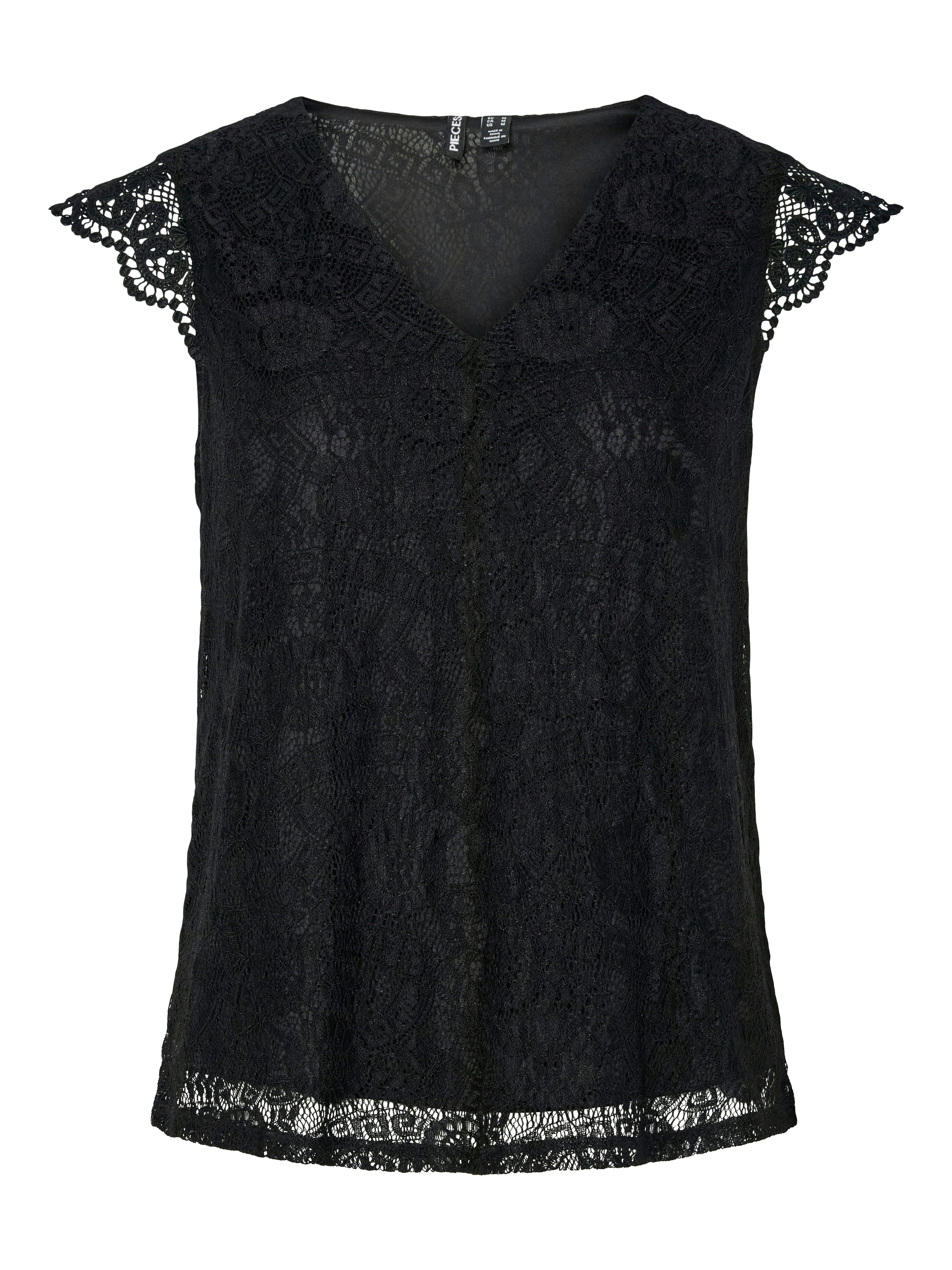 Mit dem Spitzentop »PCOLLINE SL LACE V-NECK TOP WVN NOOS« von pieces stellst du im Handumdrehen ein neues Outfit zusammen. Mit der Spitze sieht es zauberhaft und trendy aus. Dieses Top hat einen V-Ausschnitt und ist normal sowie basic geschnitten und umspielt deinen Oberkörper locker.