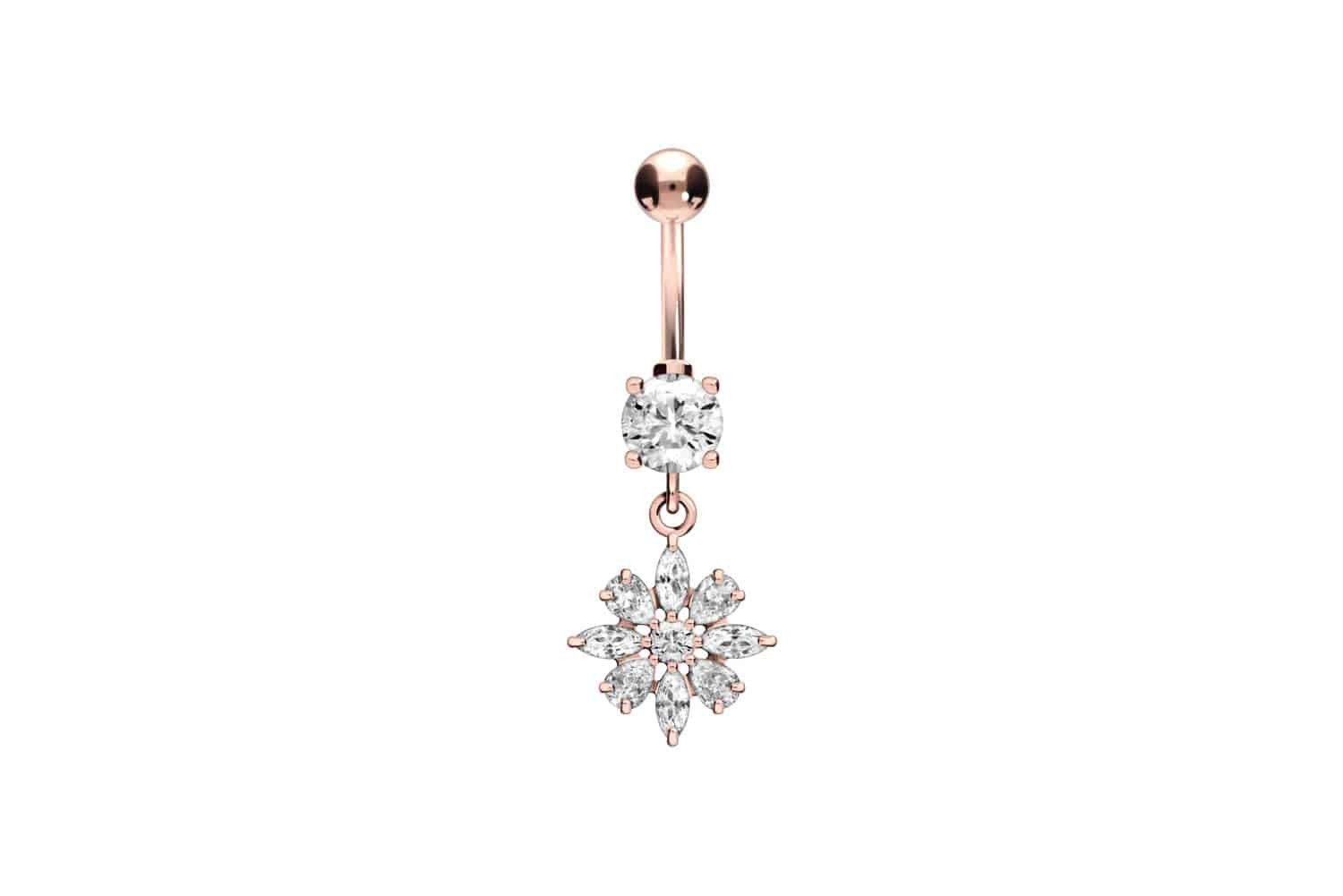 Chirurgenstahl 316L - Bauchnabelpiercing mit Brass-Design Kristallblume