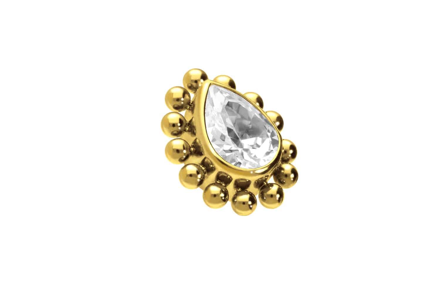 Piercing-Set Titan Schraubaufsatz mit Außengewinde KRISTALLTROPFEN + KUGELN