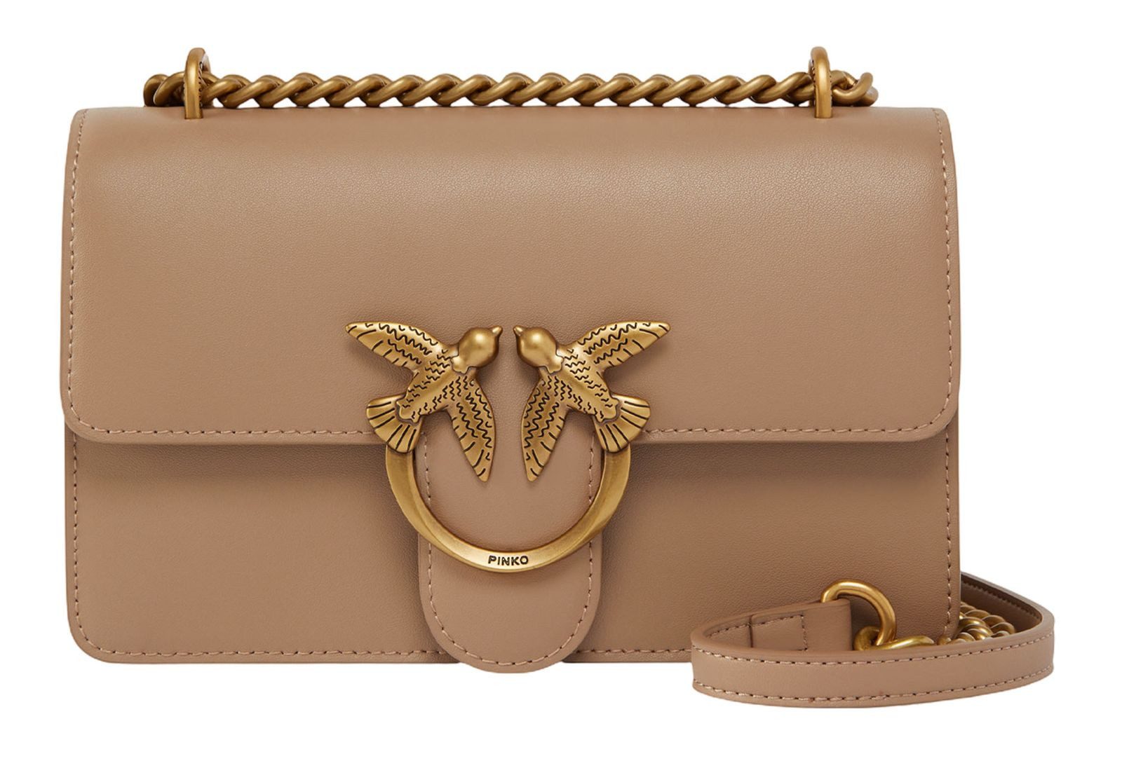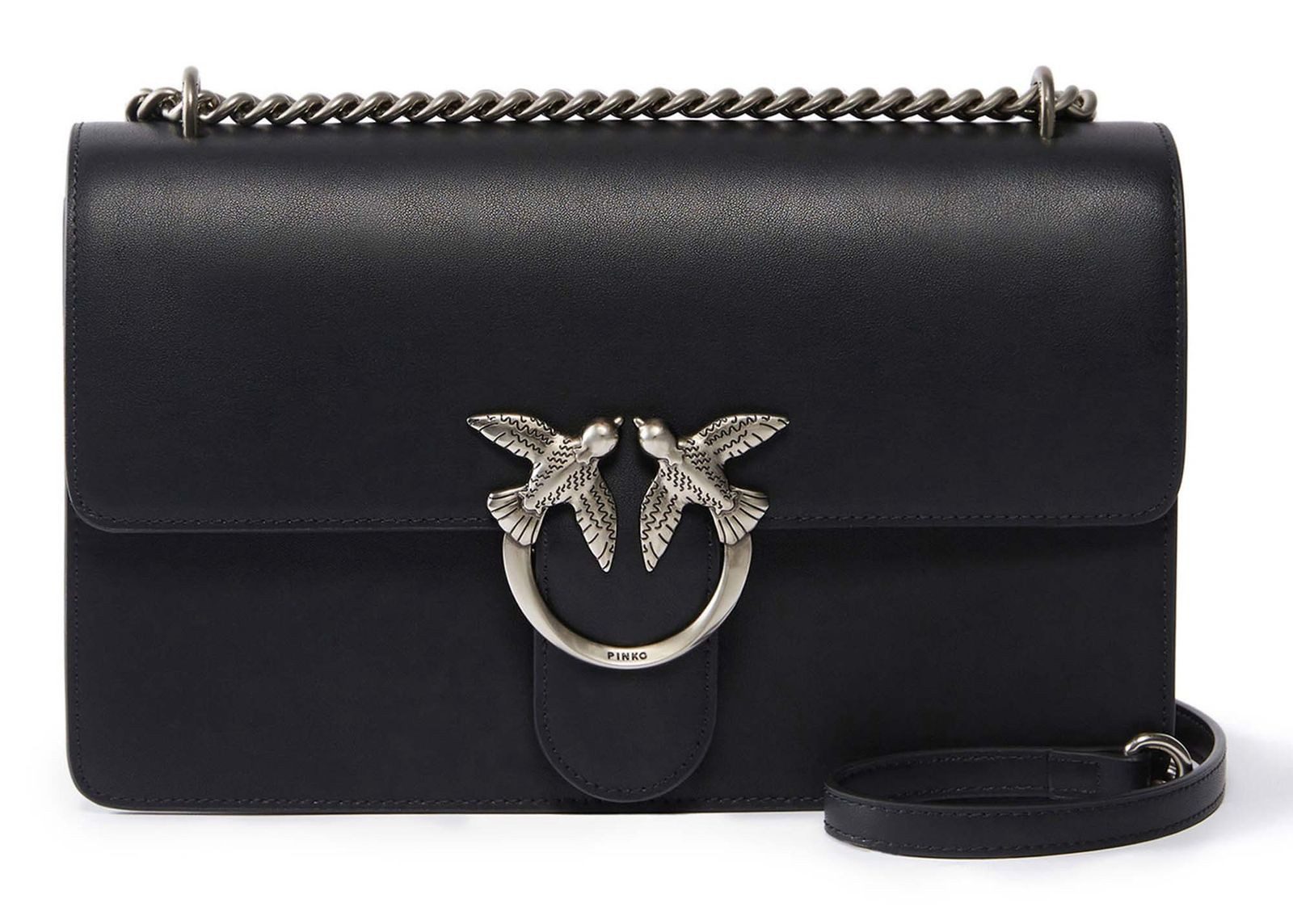 Diese PINKO Love One Mini DC wird durch glattes Leder und goldfarben Akzenten aufgewertet. Die kompakte Silhouette der Tasche verfügt über einen Schulterriemen, welcher eine Kombination aus einer klassischen Kette mit runden Gliedern und einem praktischen verstellbaren Riemen aus Leder ist. Ein zusätzliches Gadget dieser Tasche: Aktivieren Sie Ihre PINKO Tasche, indem Sie Ihr Smartphone an die Love Birds-Stickerei auf der Rückseite der Tasche halten, um die Echtheit Ihres Produkts zu überprüfen und für ein personalisiertes Erlebnis! Eine ikonische Love Birds Schließe von PINKO sorgt schlussendlich für ein strahlendes Finish.