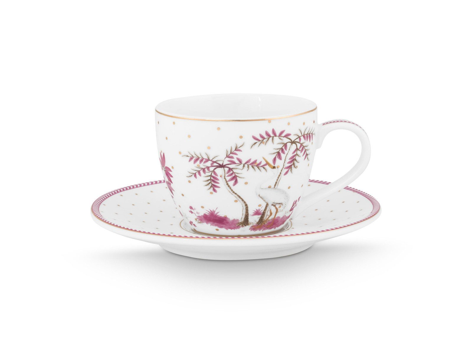 Mit der PIP STUDIO Jolie Dots Gold Pink Espressotasse mit Untertasse genießen Sie Ihren Espresso mit einem Hauch von Luxus und setzen elegante Akzente auf Ihrem Tisch.