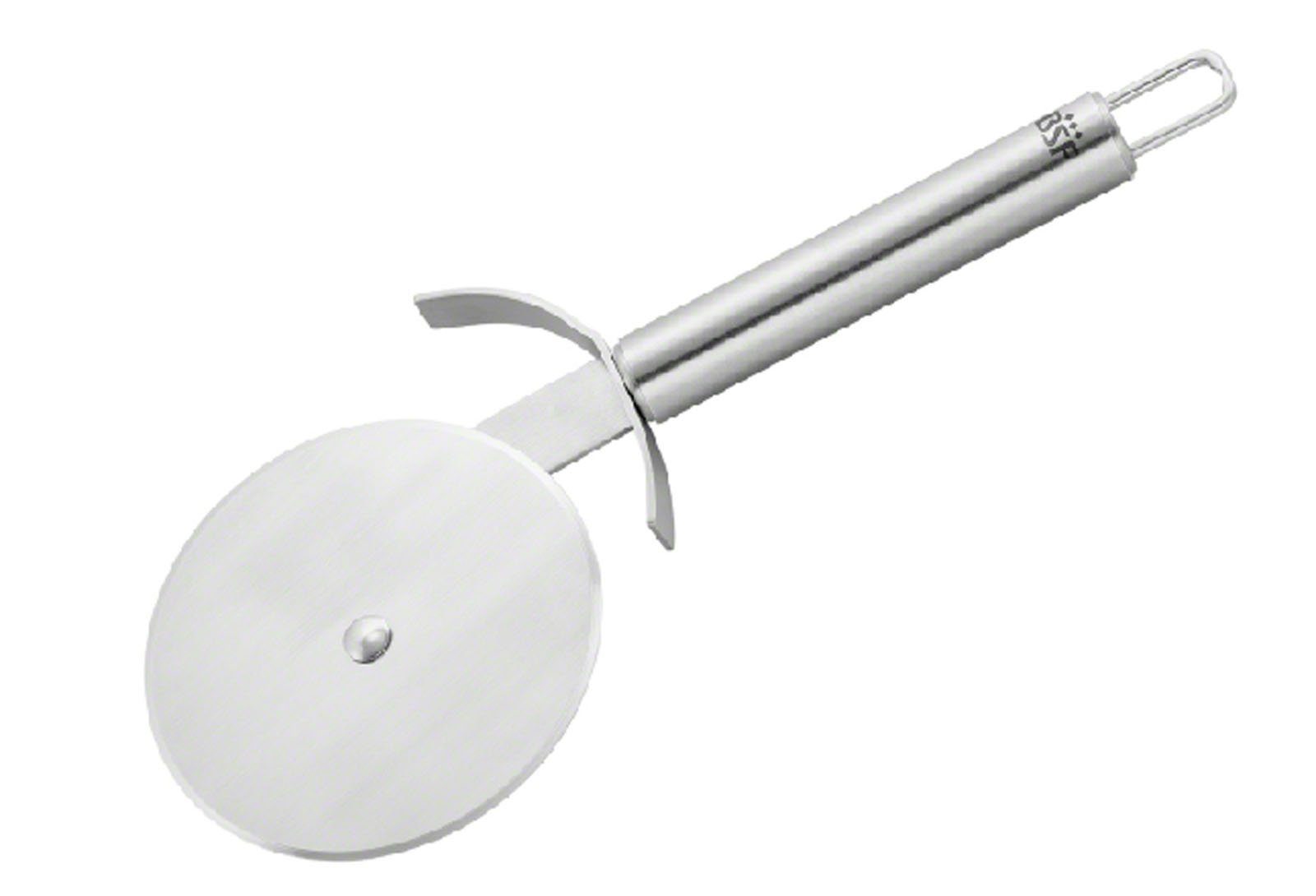 BSF Gadgets Amsterdam Pizzaschneider Pizzarolle Mit dem Pizzaschneider der Serie BSF Amsterdam können Sie den italienischen Klassiker schnell und einfach zerteilen. Die scharfe, kreisförmige Klinge gleitet ganz einfach durch Teig und Belag. Zudem liegt der runde Griff angenehm in der Hand. Dank der hochwertigen Verarbeitung aus rostfreiem Edelstahl ist dieser Pizzaschneider auch spülmaschinengeeignet und damit pflegeleicht. Er ist hitzebeständig und lässt sich an einer praktischen Öse aufhängen, so haben Sie ihn jederzeit griffbereit. Mit diesem Pizzaschneider von BSF genießen Sie Ihre Pizza schneller. Ergonomisch geformte Rundgriffe für ein besonders angenehmes Handling Praktische Aufhängeösen 18/10 Rostfreier Edelstahl Spülmaschinengeeignet Besonders scharf