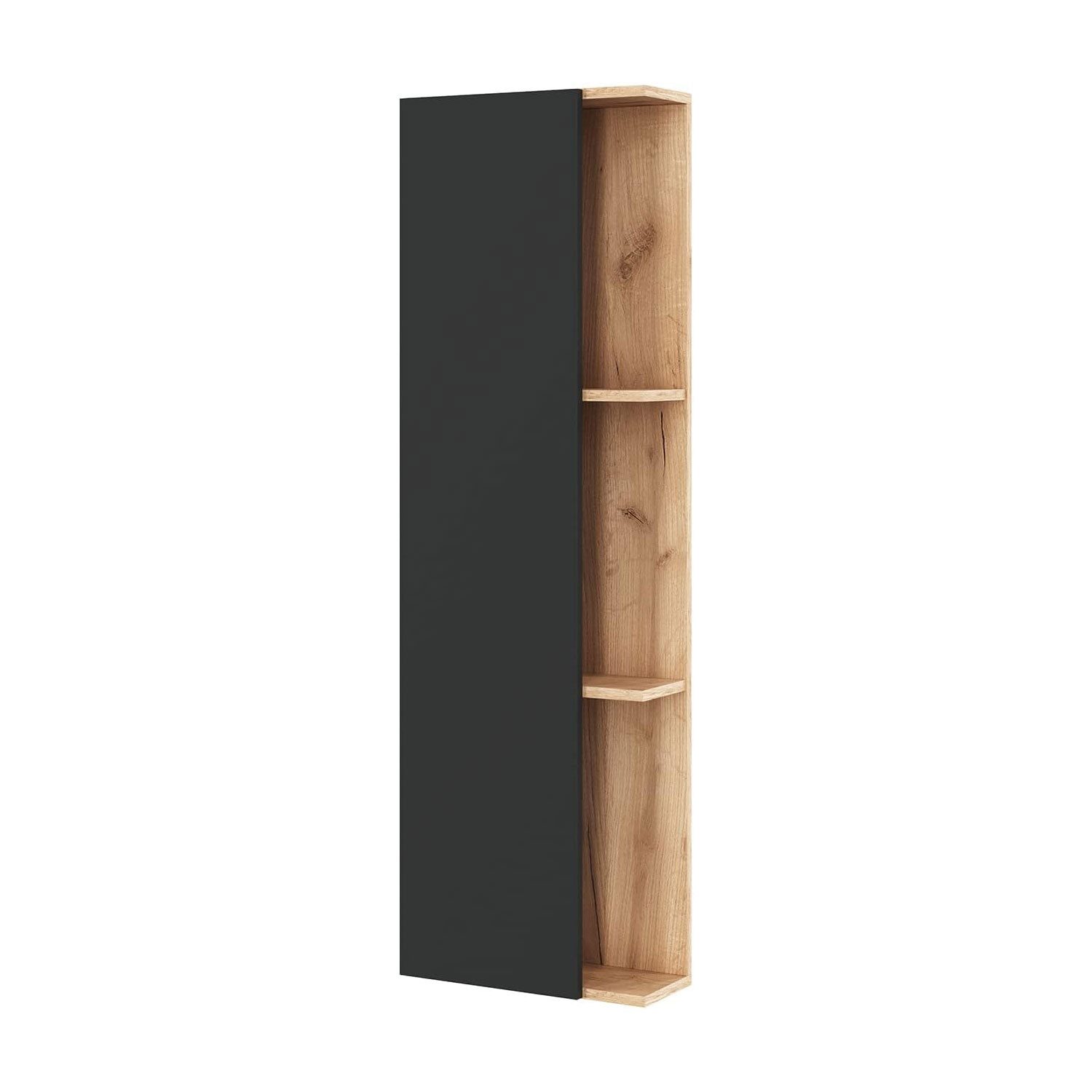 Dieser Seitenschrank in Gold Eiche / Anthrazit besticht durch sein elegantes und zeitloses Design und ist ein absolutes Highlight in Ihrem Badezimmer, Wohnzimmer oder Flur. Lassen Sie sich von unserer Farbvielfalt überraschen und finden Sie ein Produkt, das genau zu Ihnen passt. Unser Seitenschrank kann sicher an der Wand montiert werden und hat daher keine Probleme mit nassen Böden. In einer Breite von etwa 40cm finden Sie viel Stauraum für Ihre Utensilien.