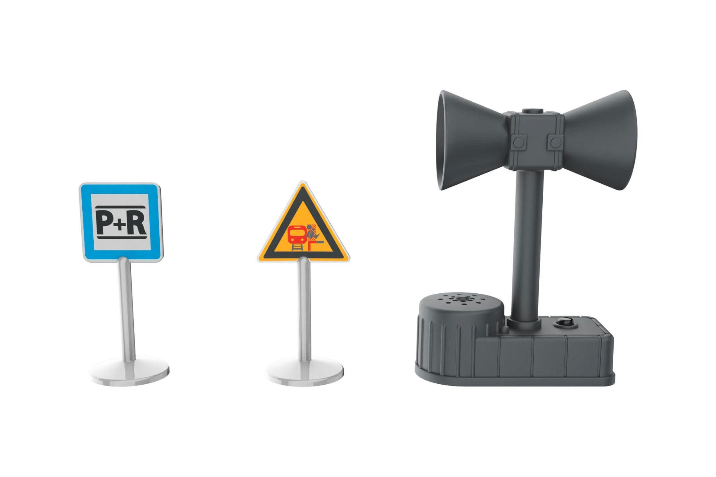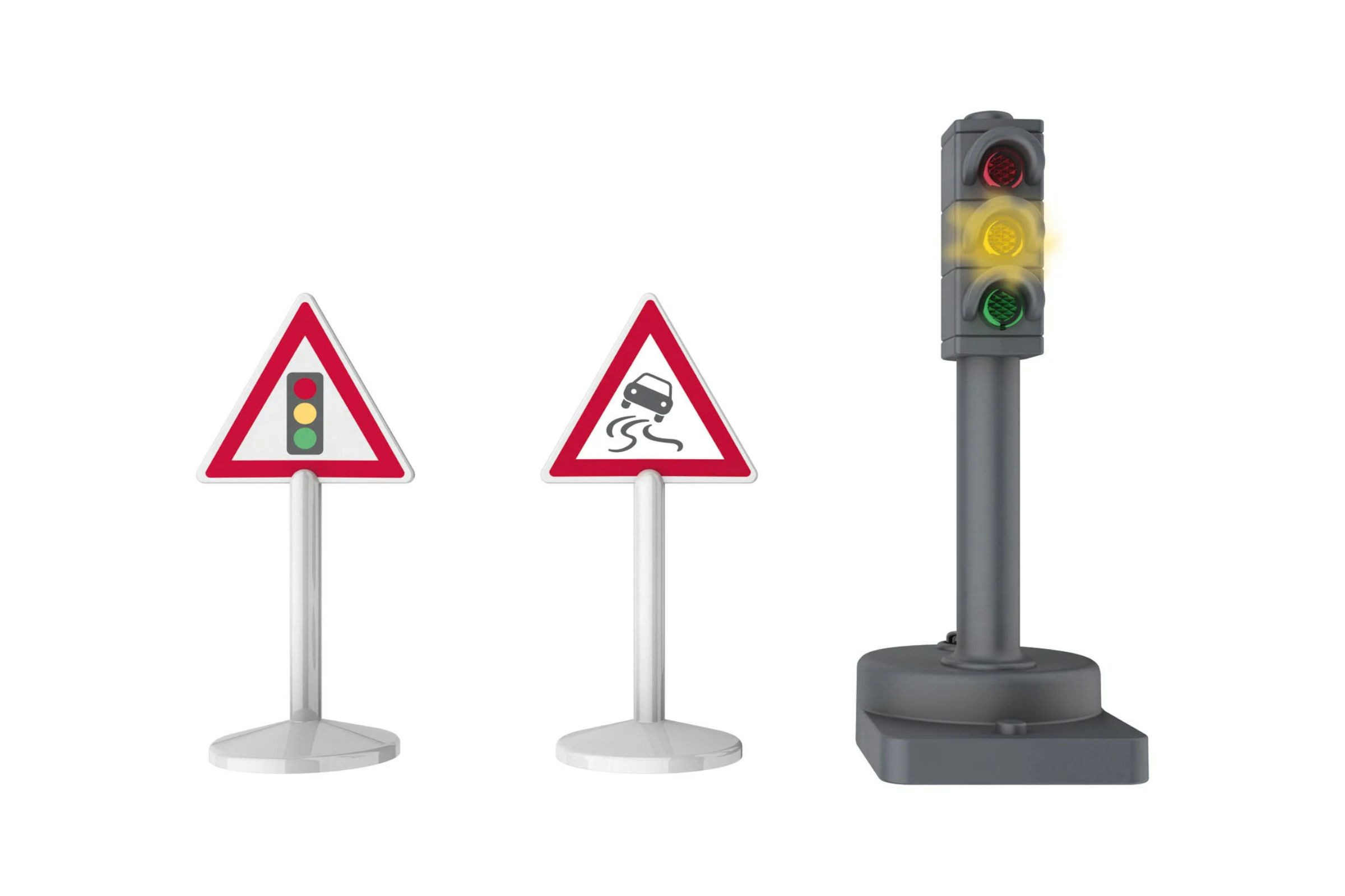 Warnhinweise | ACHTUNG! Nicht für Kinder unter 36 Monaten geeignet. Erstickungsgefahr, da kleine Teile verschluckt oder eingeatmet werden können!, Ampel, Straßenlaterne, Bahnsignal: Enthält Münzbatterie. Bei Verschlucken besteht Gesundheitsgefahr. Das Spielzeug erzeugt Lichtblitze, die bei empfindlichen Personen Epilepsie auslösen können. |