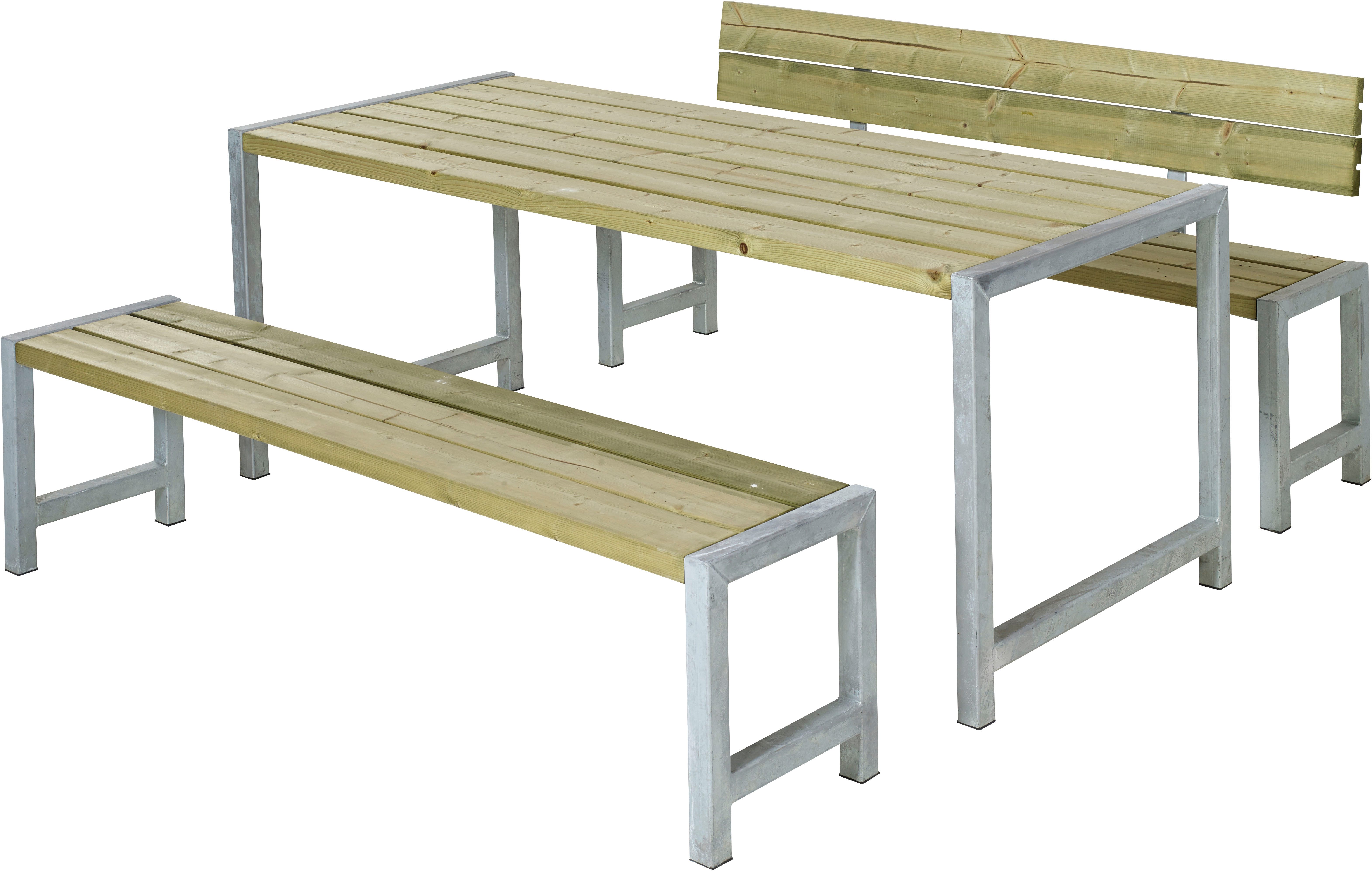 PLUS Garten-Essgruppe Plankengarnituren, (3-tlg), bestehend aus: Tisch und 2 Bänke + 1 Rückenlehne