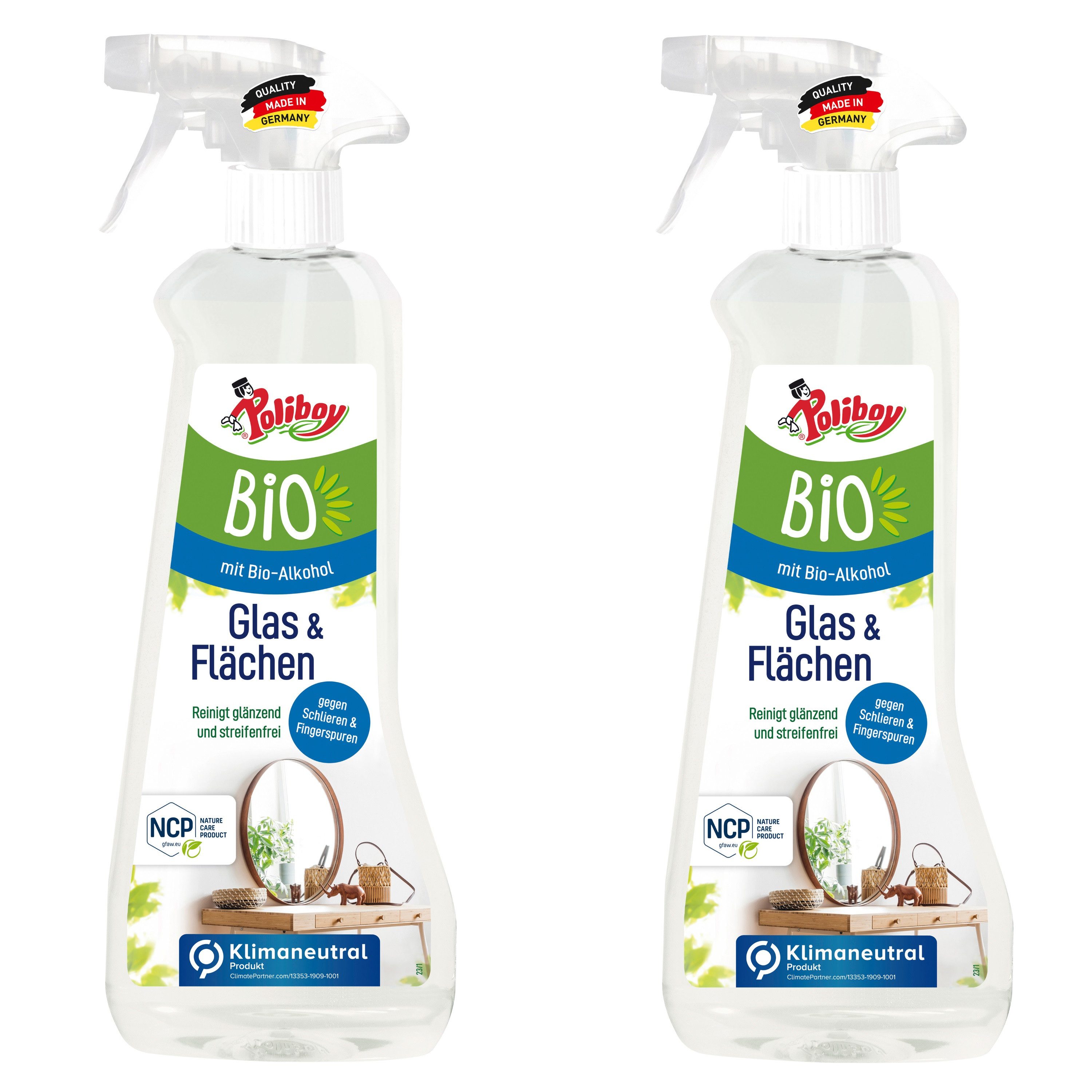 POLIBOY BIO Glas & Flächen Reiniger zaubert streifenfreie Glas- und Spiegeloberflächen. Durch eine kraftvolle ökologische Reinigung mit Bio Alkohol.