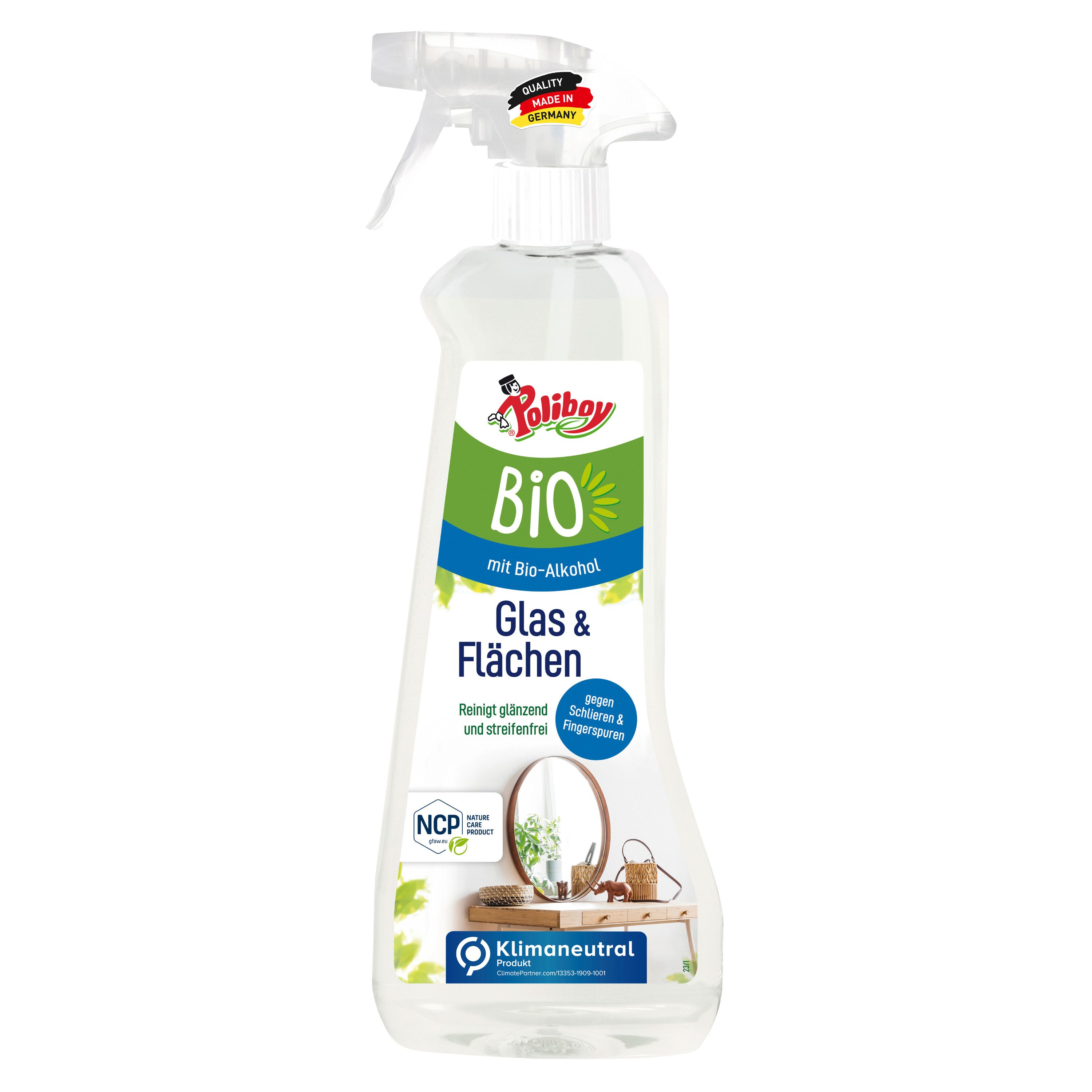 POLIBOY BIO Glas & Flächen Reiniger zaubert streifenfreie Glas- und Spiegeloberflächen. Durch eine kraftvolle ökologische Reinigung mit Bio Alkohol.