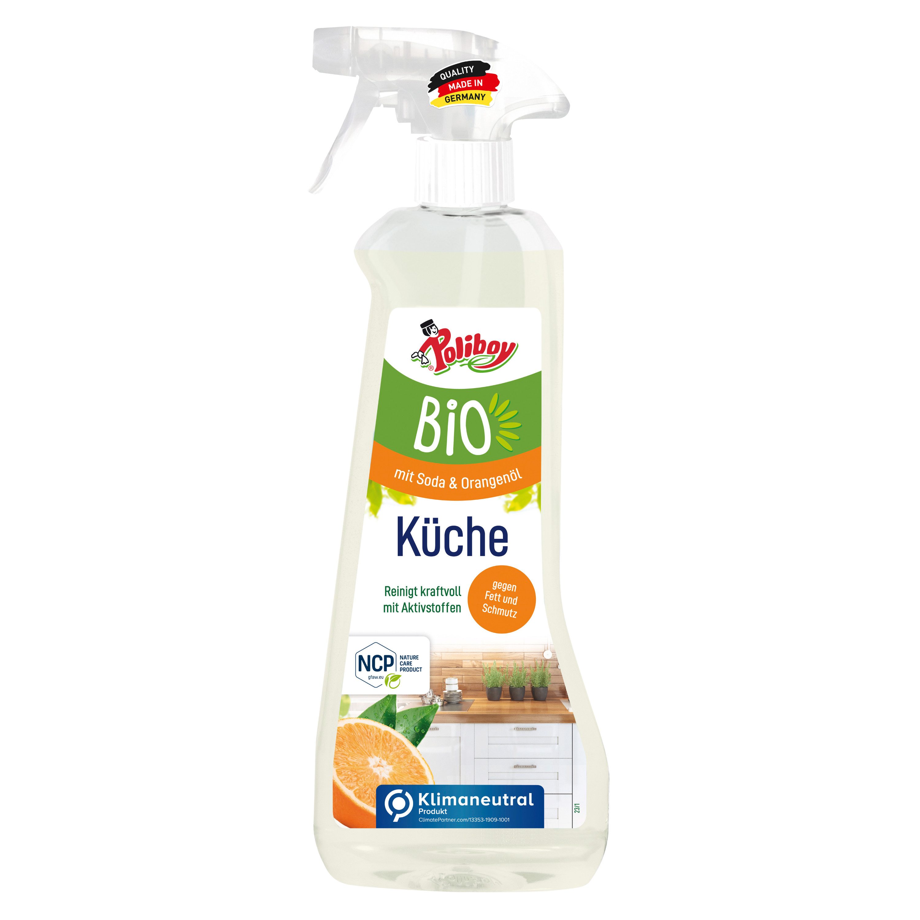 Die spezielle Kombination von natürlichem Soda und BIO-Alkohol unterstützt die Ablösung von hartnäckigem Fettschmutz und anderen Verfleckungen. Dabei bleiben keine bedenklichen Rückstände zurück, die Flächen sind lebensmittelsauber.