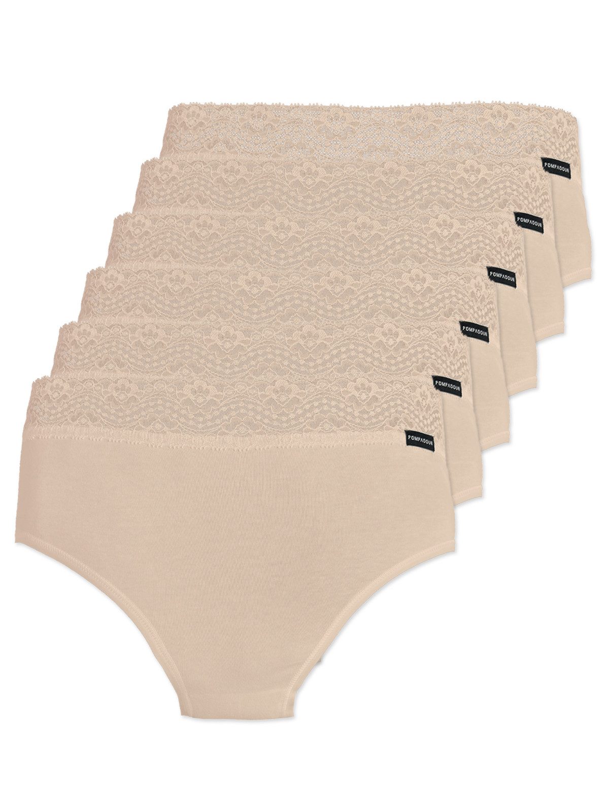 6er Pack Damen Hüftslip von der Marke Pompadour aus der Serie DUO Lace. Besondere Merkmale des Artikels sind hoher Baumwollanteil für ein tolles Gefühl beim Tragen, feminine Spitze am Bund, flache Nähte für extra Komfort, gerundete Beinabschlüsse und Slip, hüftig geschnitten. Pompadour bietet stilvolle und zeitlose Damenunterwäsche, die Komfort und Eleganz vereint. Hochwertige Materialien und zeitlose Designs sorgen für ein angenehmes Tragegefühl und Selbstbewusstsein. Entdecken Sie die perfekte Mischung aus Schönheit und Bequemlichkeit!
