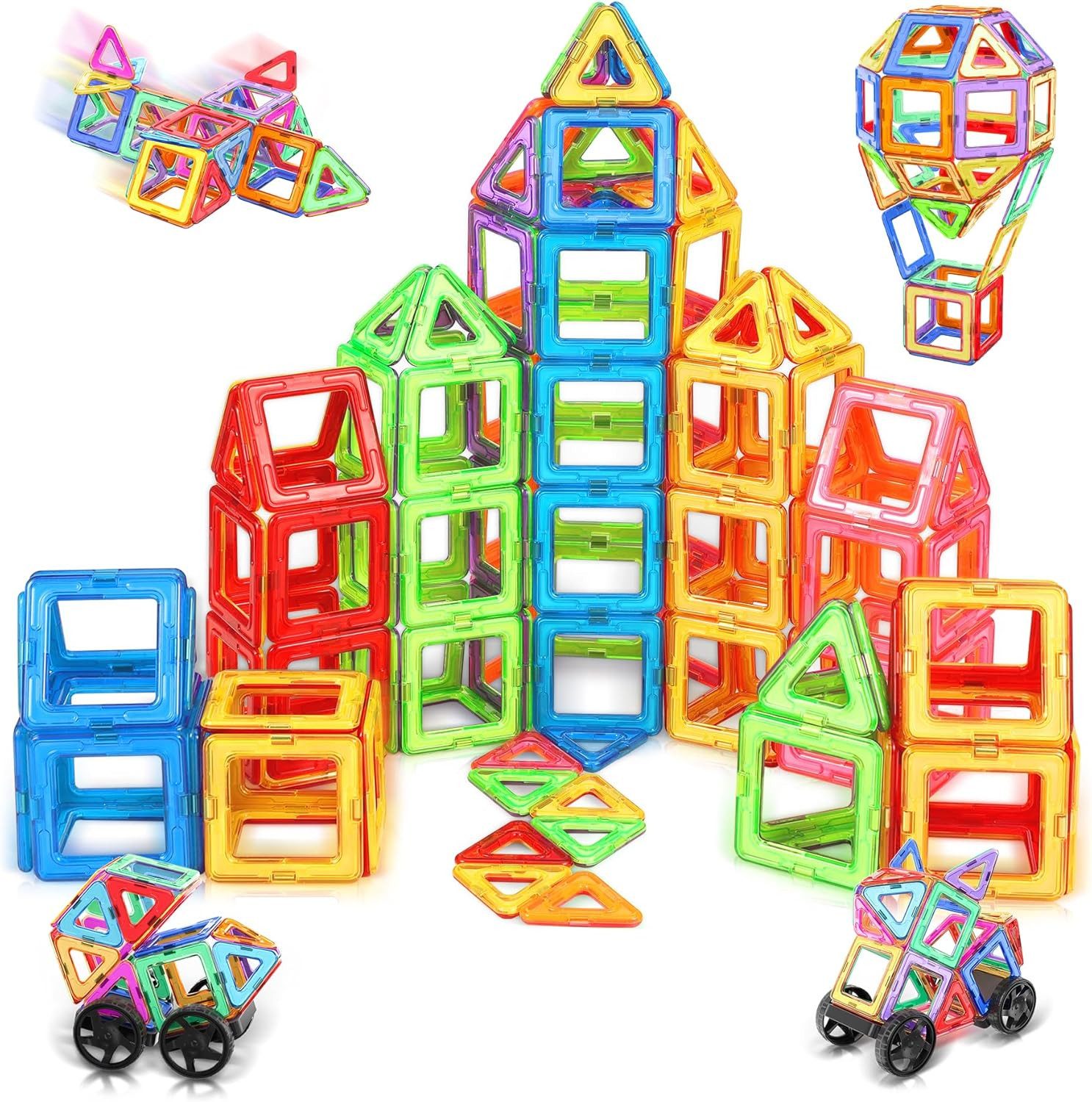 Mit diesem 50-Stück Magnetbausteine Set können Kinder ihre Kreativität entfalten und faszinierende 2D- und 3D-Strukturen wie Burgen, Autos und Tiere bauen. Die Magnetbausteine fördern das logische Denken, die Aufmerksamkeit, die Fantasie und die kognitiven Fähigkeiten von Kindern und bieten stundenlangen Spielspaß.