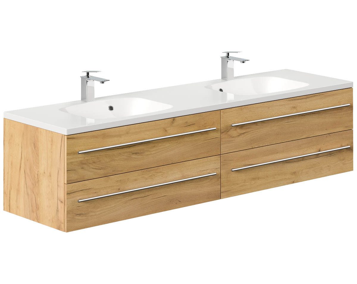 Zu zweit mehr Spaß im Bad! Optisch schmeichelnd fügt sich diese extra-geräumige Möbelserie ein in vorhandene Badelandschaften, oder bietet den soliden Möbel-Grundstein für eine komplette optische Neuausrichtung des Innendesigns. Die Qualitätsbeschichtung der Oberfläche sorgt nicht nur für ein schickes Finish der Möbel, sondern auch für eine optimale Versiegelung der Waschtische gegen Schmutz und Feuchtigkeit. Die „DBS & MFC“-Dekore stehen für beeindruckend Holzoptiken, die dank ausgeprägter Äste und Maserung überaus realistisch wirken und auch haptisch das Gefühl echten Holzes vermitteln.