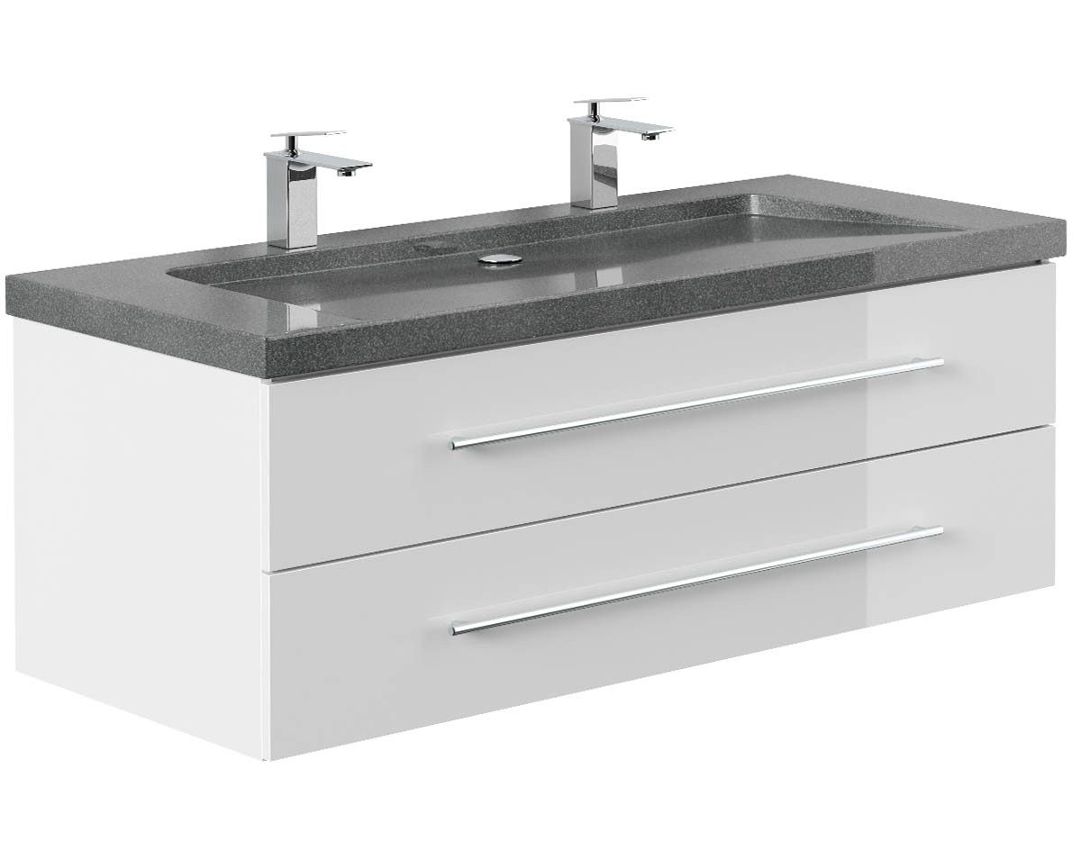 Aufbauhinweise | Der Unterschrank wird vormontiert von der Spedition angeliefert. Becken aufsetzen, anschließen und fertig! |
