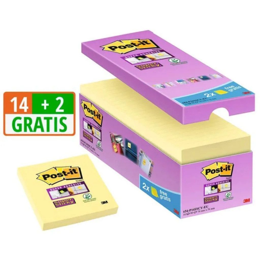 Mit diesem Angebot erhältst du 14 Blöcke der extrastarken Post-it® Haftnotizen 654 in leuchtendem Gelb und zusätzlich 2 Blöcke GRATIS. Diese Haftnotizen zeichnen sich durch ihre außergewöhnliche Haftkraft aus und haften sicher auf den verschiedensten Oberflächen.