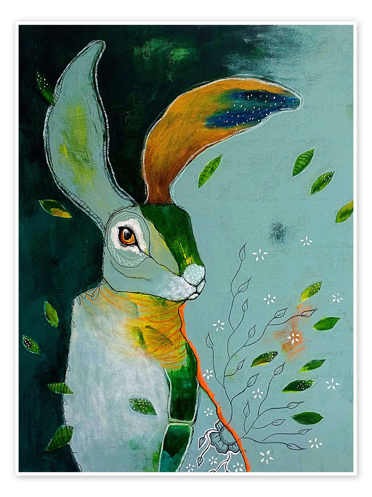 Das Poster „Langohr im Wind – Abstrakter Hase“ (698475) aus dem Меню des Kunstverlags Posterlounge wird Sie mit intensiven Farben und hervorragender Kunstdruck-Qualität begeistern. Der hochwertige, leicht glänzende Druck auf kräftigem Premiumpapier (250 g/m²) macht das Bild von Micki Wilde zu einem echten Hingucker für Ihr Zuhause. Durch den 3 mm breiten weißen Rand, der in allen Formaten inbegriffen ist, wird das Motiv hervorgehoben und wirkt besonders edel.