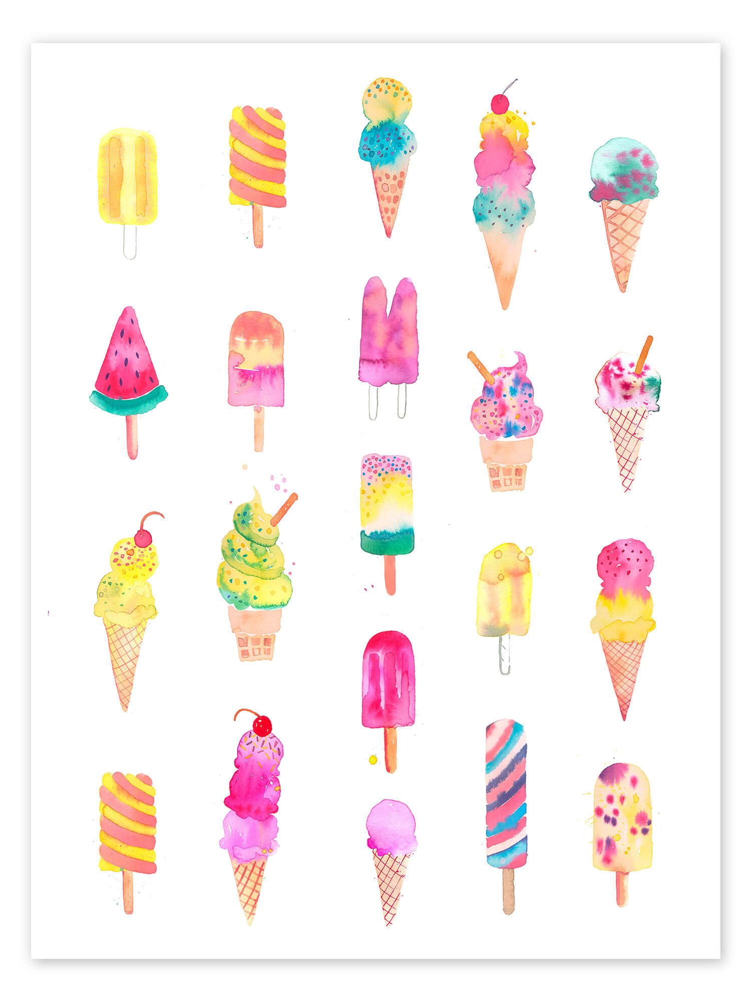 Das Poster „Süßes Sommereis“ (739470) aus dem Меню des Kunstverlags Posterlounge wird Sie mit intensiven Farben und hervorragender Kunstdruck-Qualität begeistern. Der hochwertige, leicht glänzende Druck auf kräftigem Premiumpapier (250 g/m²) macht das Bild von Ninola Design zu einem echten Hingucker für Ihr Zuhause. Durch den 3 mm breiten weißen Rand, der in allen Formaten inbegriffen ist, wird das Motiv hervorgehoben und wirkt besonders edel.