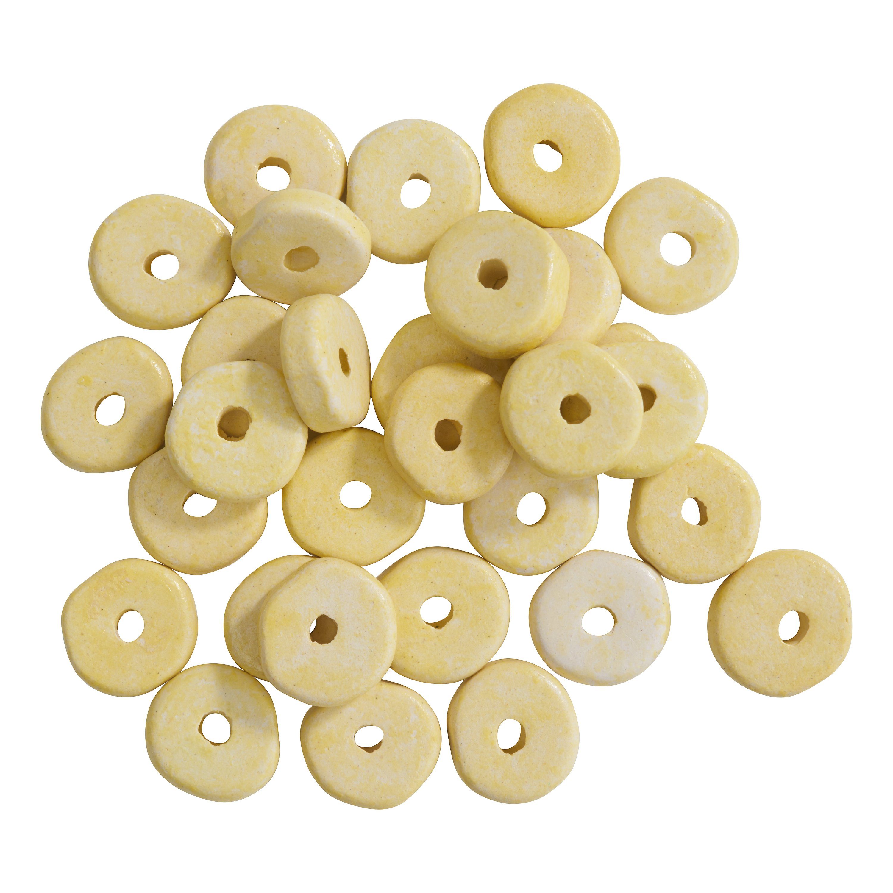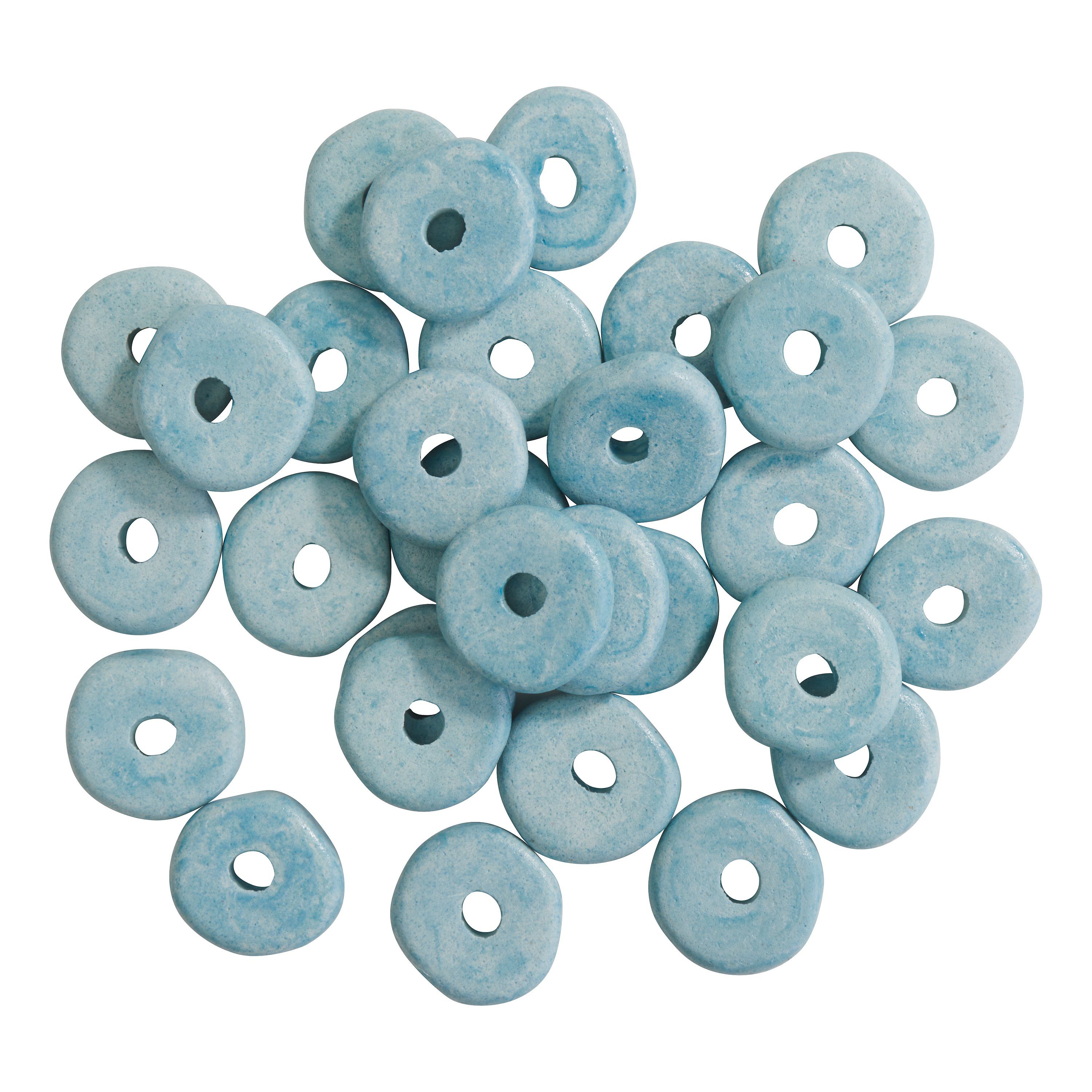 Du möchtest deine Kreativarbeiten einen besonderen Look geben? Dann sind diese Keramikscheiben genau das was du suchst! Mit einem Loch-Ø von 1,2 mm und einem Durchmesser von 6 mm sind sie ideal zum Anfertigen von Schmuckstücken und weiteren Kreativarbeiten geeignet. Durch ihre ungleiche Form haben die 30 Keramikscheiben einen natürlichen Look und sind ein echter Hingucker.