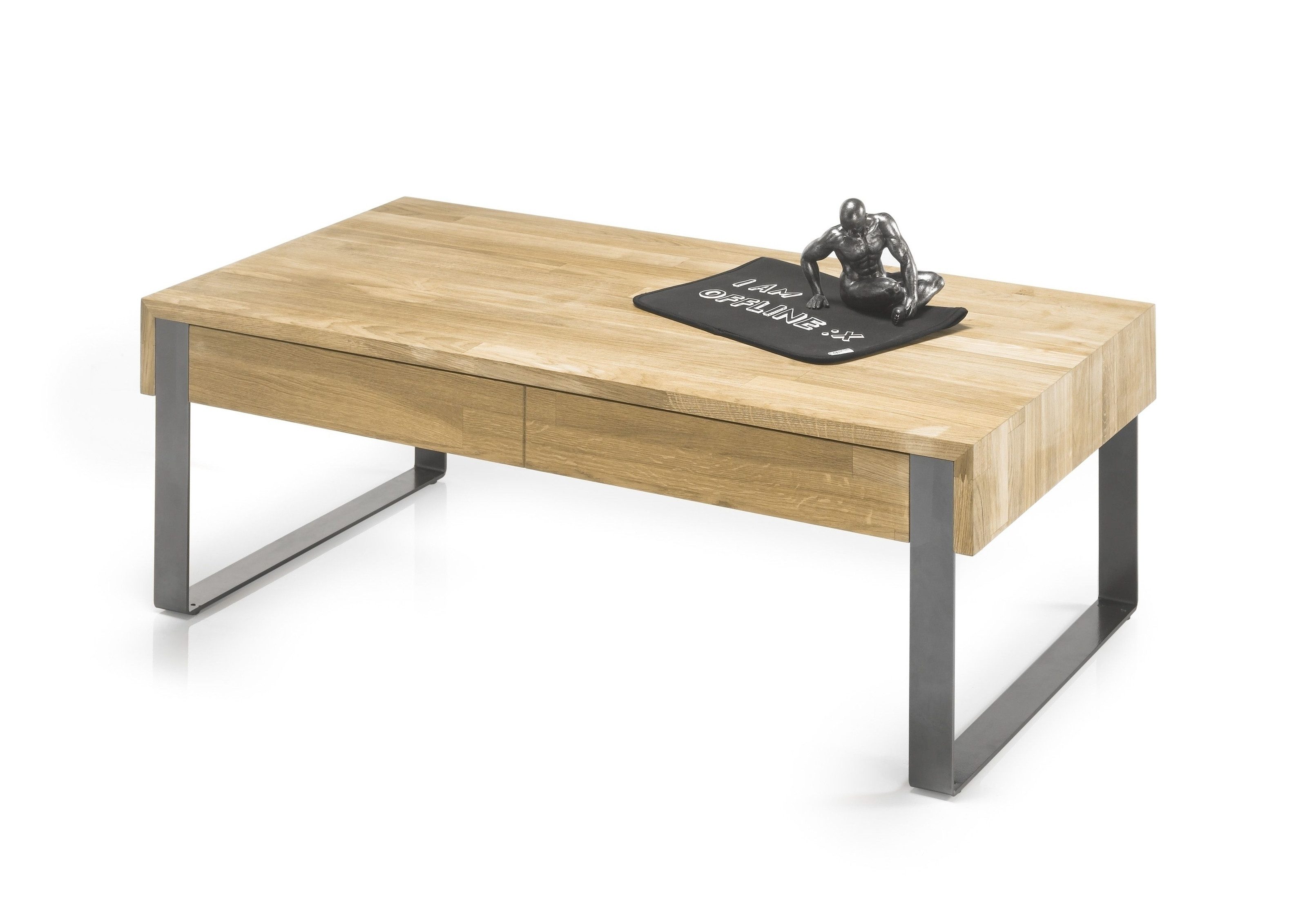 Praktische Schublade aus massiver Eiche – bietet zusätzlichen Stauraum für Zeitschriften, Fernbedienungen und mehr, ideal für ein aufgeräumtes Wohnzimmer.