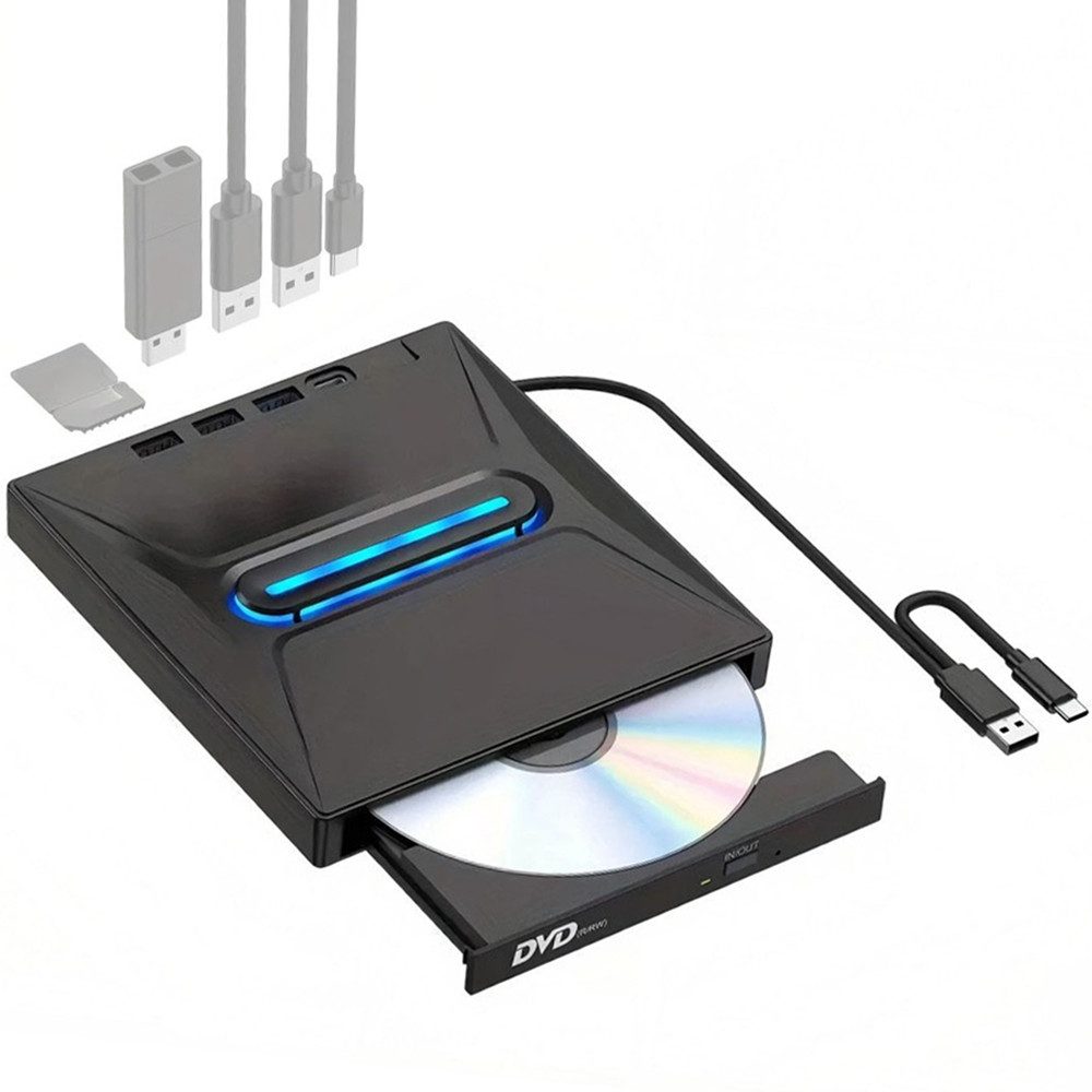 Externes CD/DVD-Laufwerk mit USB-Hub-Funktion