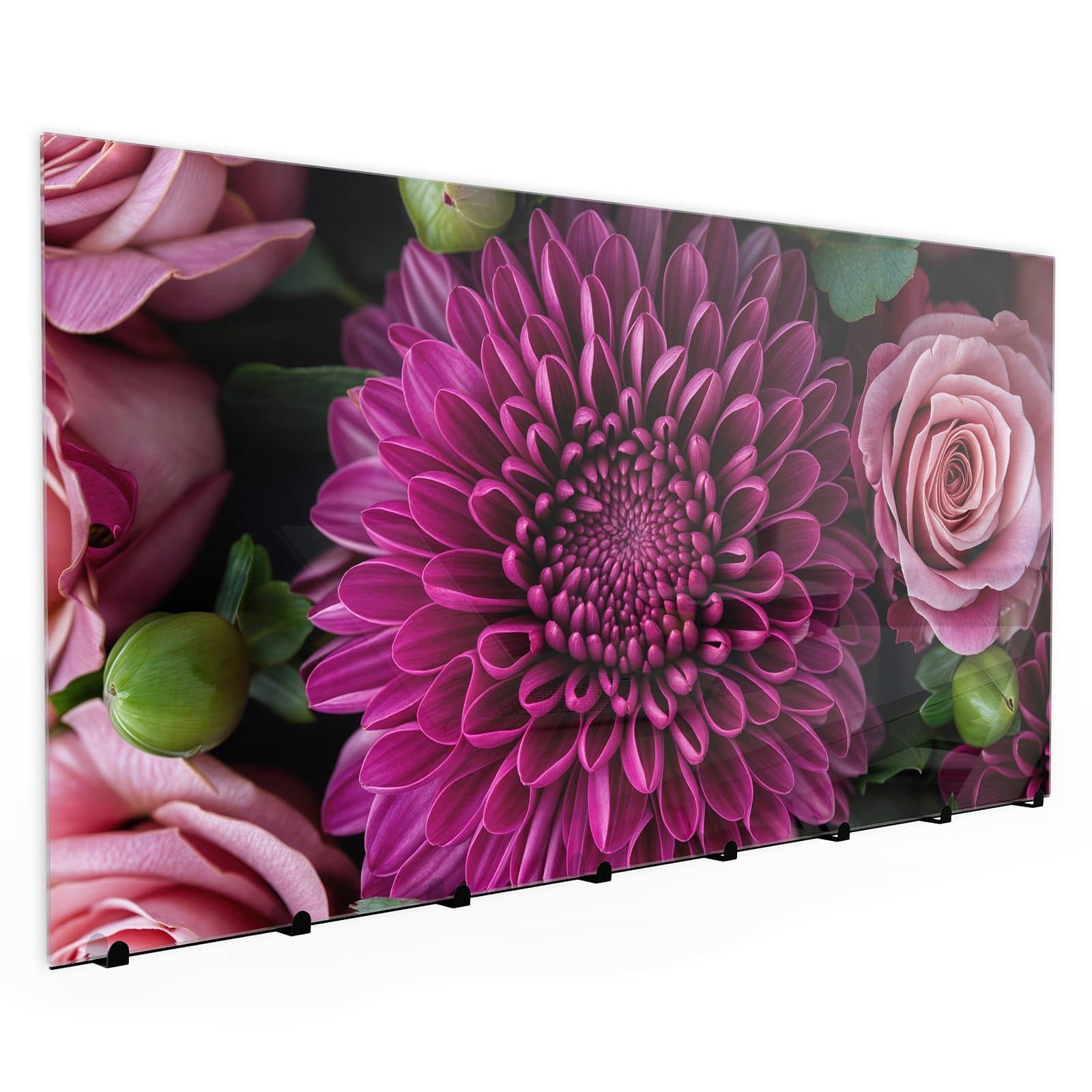 Primedeco Garderobenpaneel Kleiderhaken aus Glas Blumenarrangement (1 St., Inkl. Magnete, Stifte und Montagematerial), Magnetisch & Beschreibbar