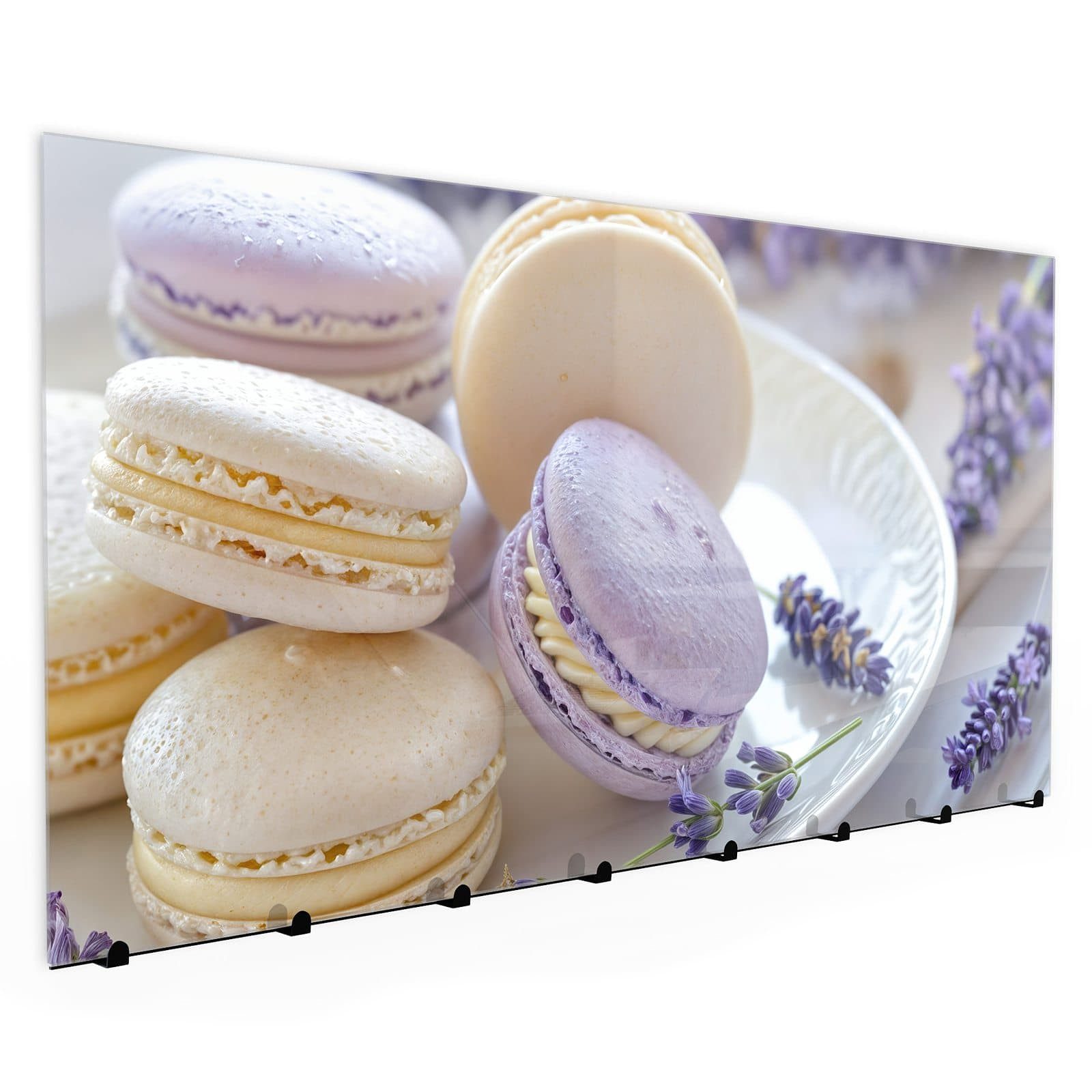 Primedeco Garderobenpaneel Kleiderhaken aus Glas Lavendel Macarons (1 St., Inkl. Magnete, Stifte und Montagematerial), Magnetisch & Beschreibbar