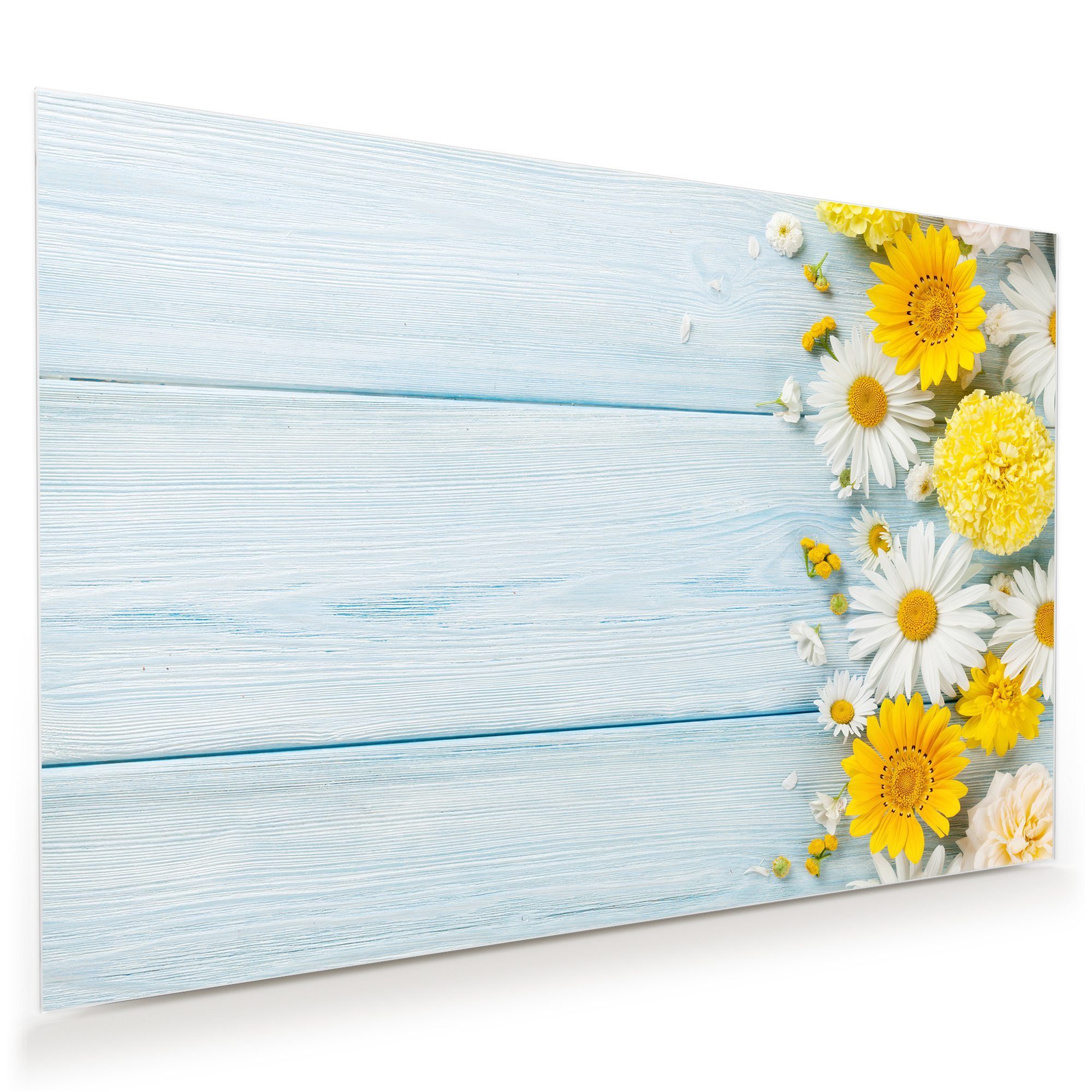 Glasbild Wandbild Gartenblumen als Dekoration mit Aufhängung