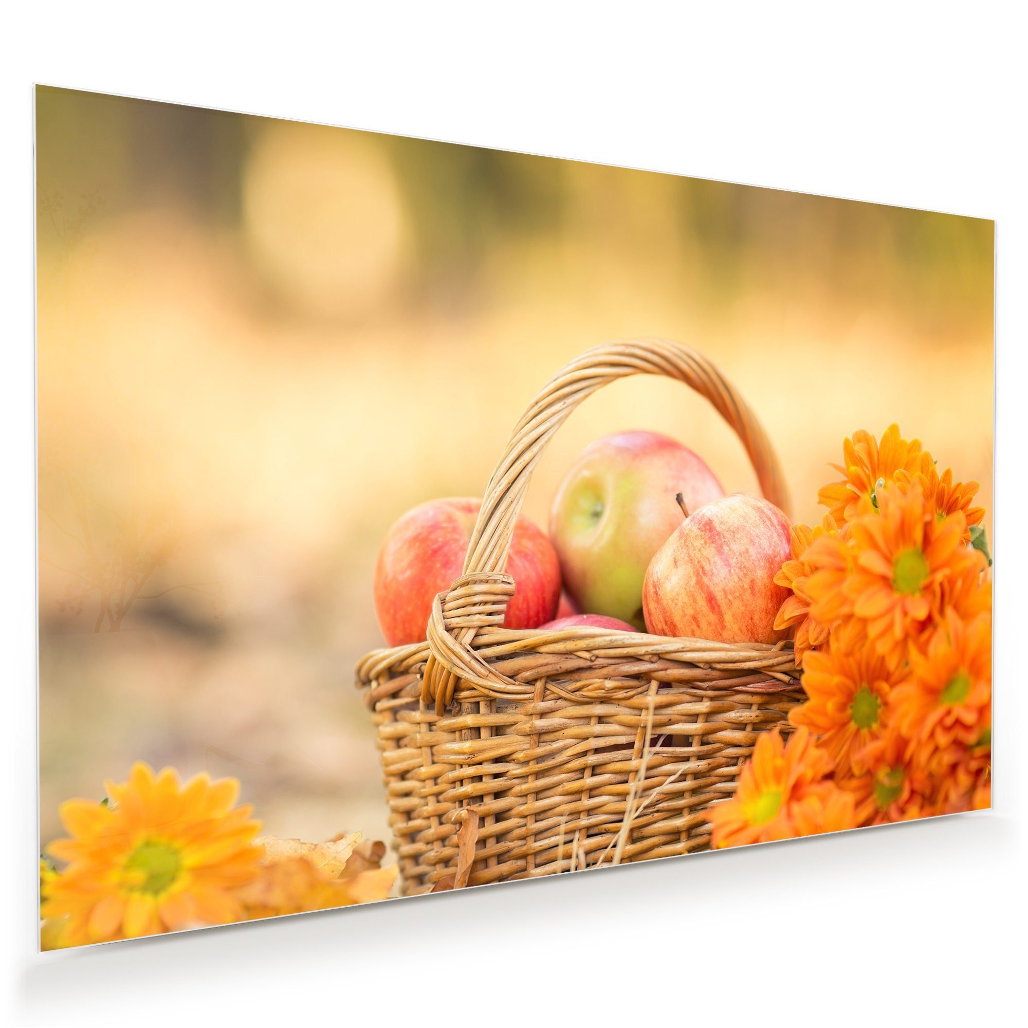 Primedeco Glasbild Wandbild Korb voller Äpfel mit Aufhängung, Blumen (21 verschiedene Größen, 1 St), Elegante Aufhängung