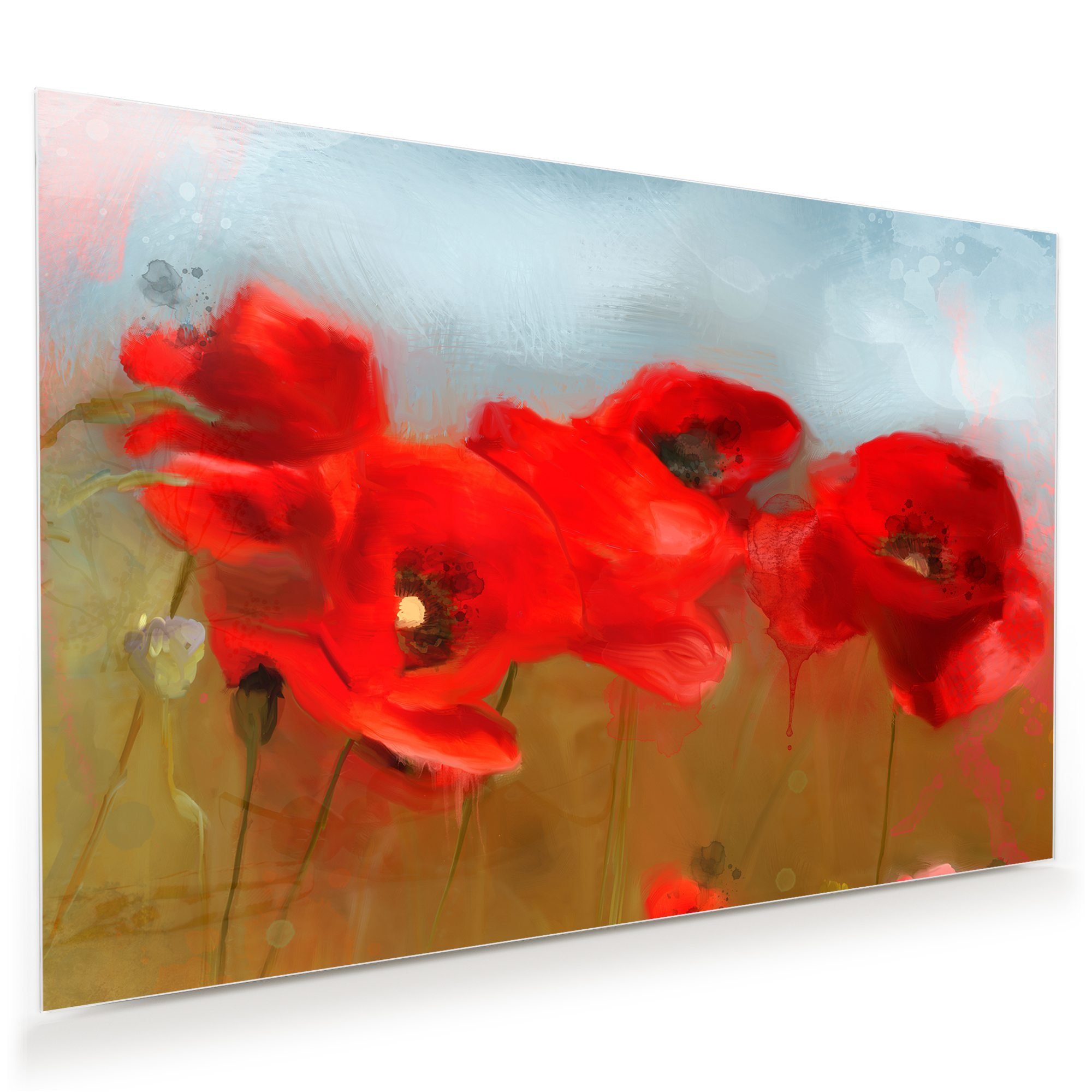 Primedeco Glasbild Wandbild Mohnfeld mit Aufhängung, Blumen (21 verschiedene Größen, 1 St), Elegante Aufhängung