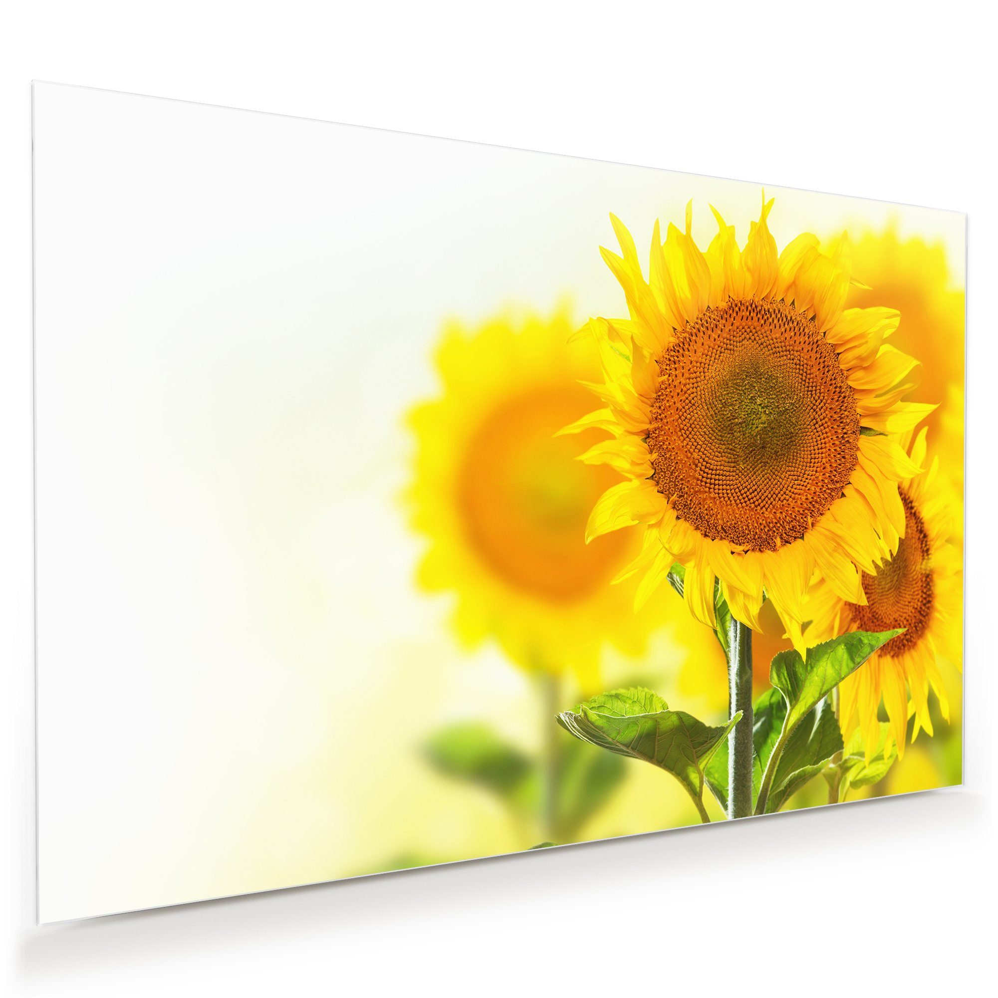 Primedeco Glasbild Wandbild Sonnenblumenzweige mit Aufhängung, Blumen (21 verschiedene Größen, 1 St), Elegante Aufhängung