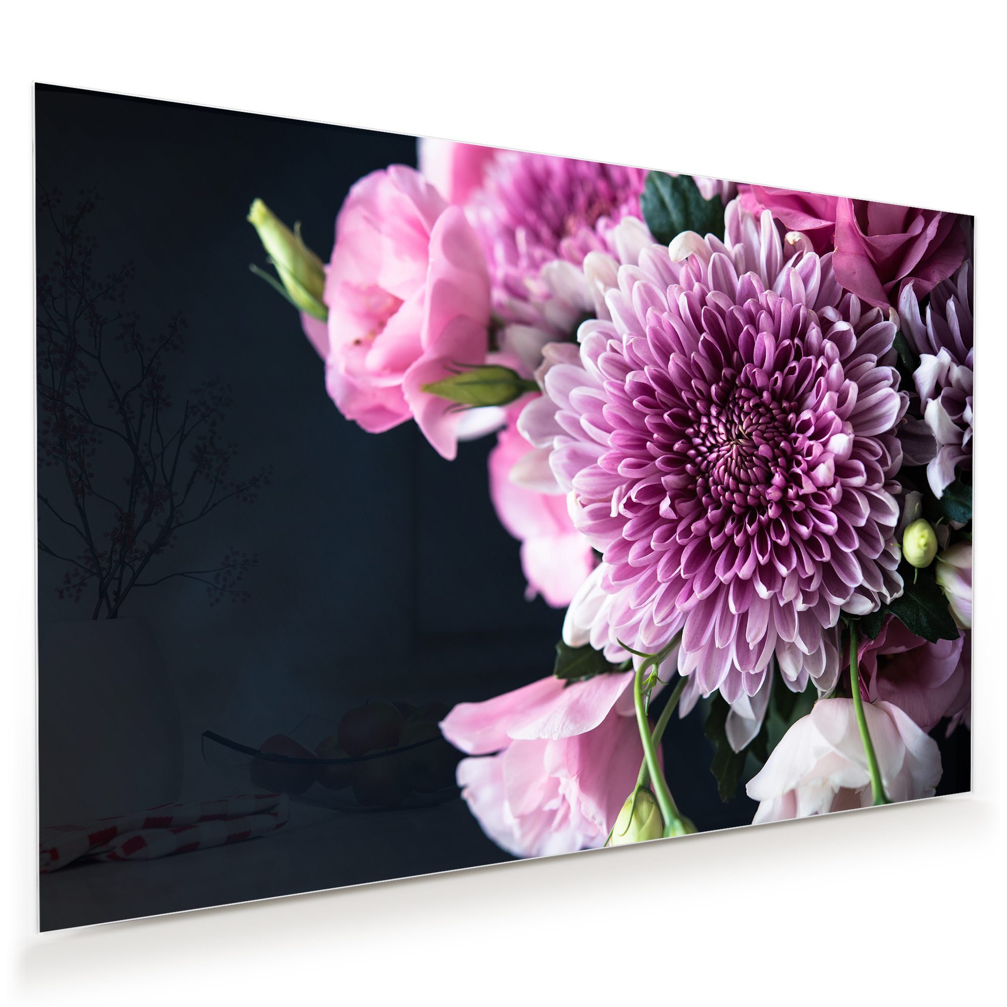 Glasbild Wandbild Vintage Blumendekoration mit Aufhängung